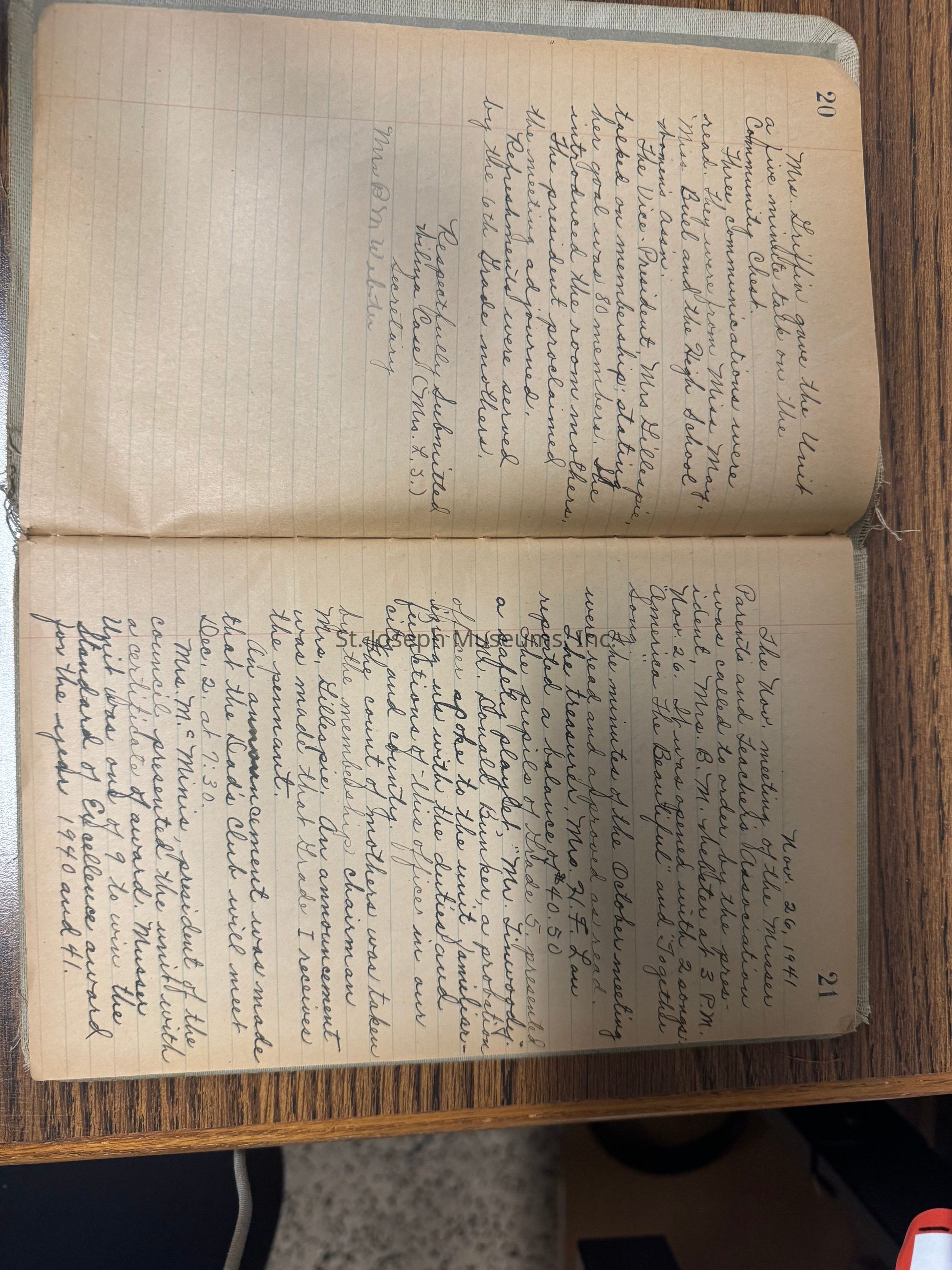 Musser School Parent Teachers Association Minutes Book, 09/18/1940 - 04/25/1951.Lexicon
