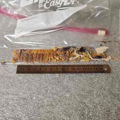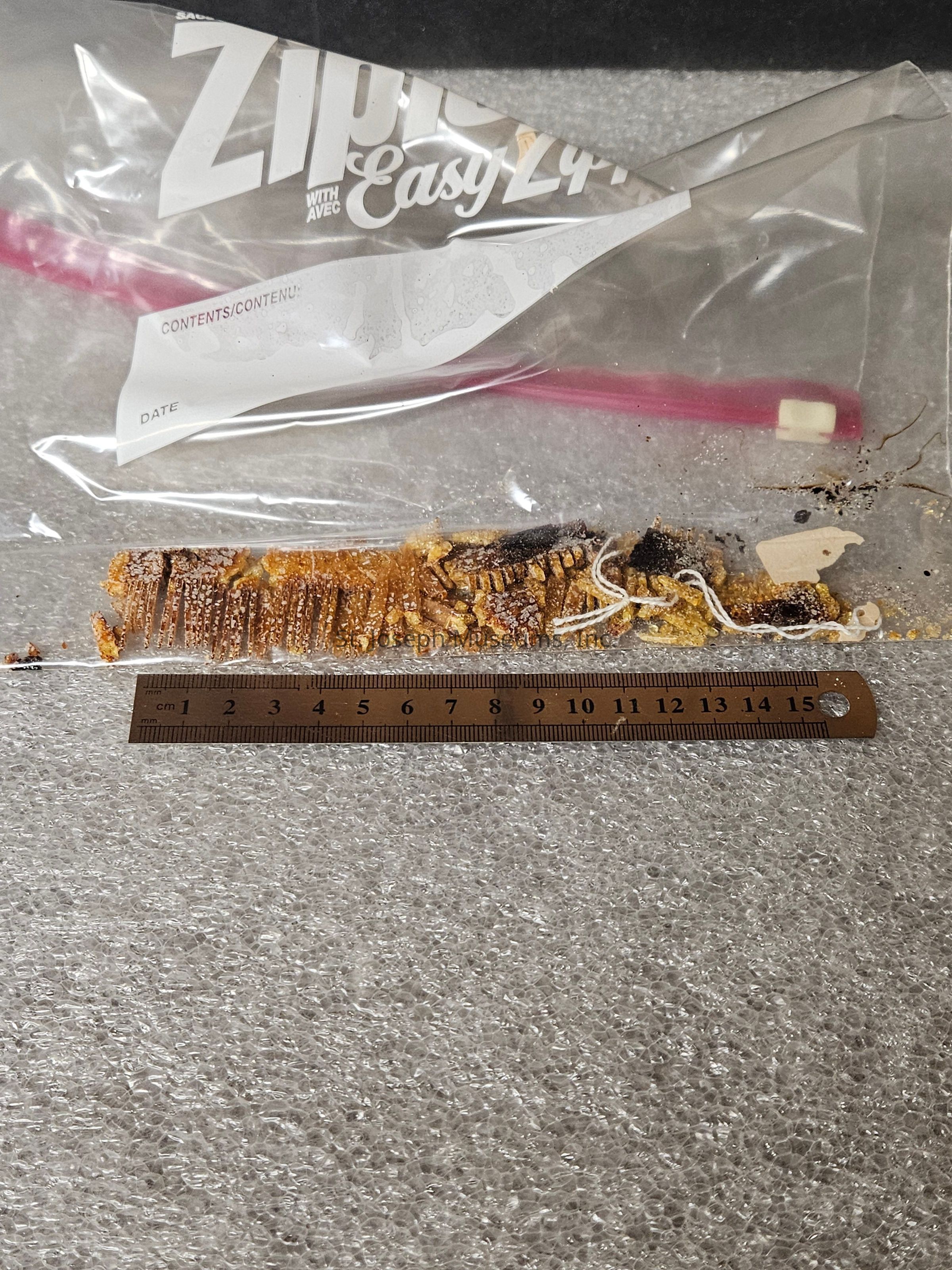 Comb/plastic or tortiseshell/ amber color/ Amerith" stamped into top/ one tooth missing/ c. 1900