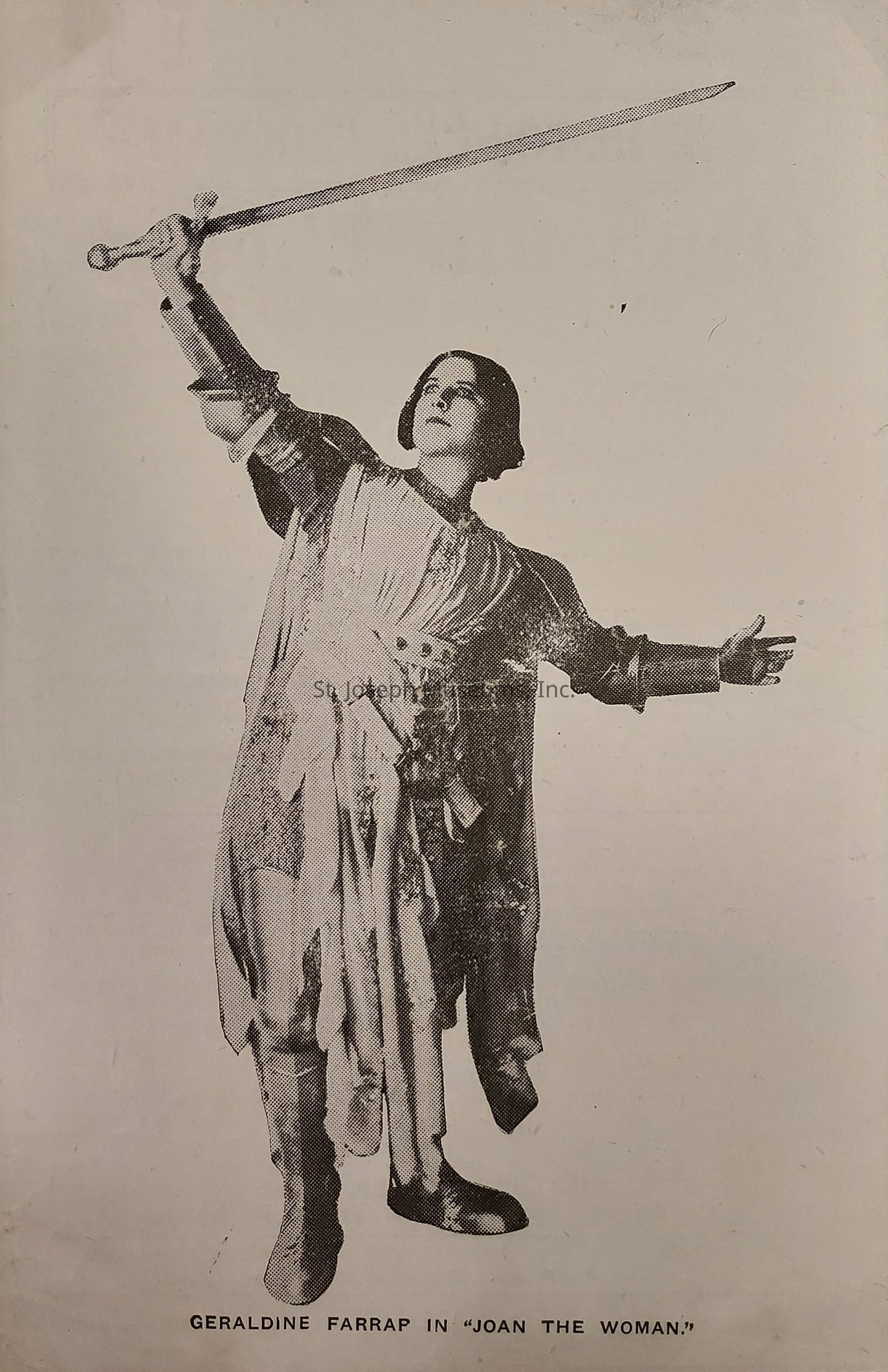 Program for "Joan the Woman" at the Orpheum Theater starring Geraldine Farrar as Joan. May, 1917. Photo of Farrar in costume on cover. Local advertisements.