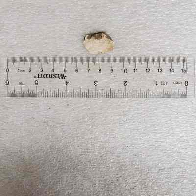 Irregular shaped stone / dark grey color / flake chip (?)