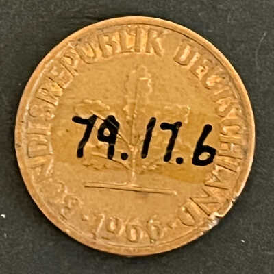 "Bundesrepublik Deutschland" 1966- 1 Pfennig, coin/token, copper colored/ 5/8 dia.