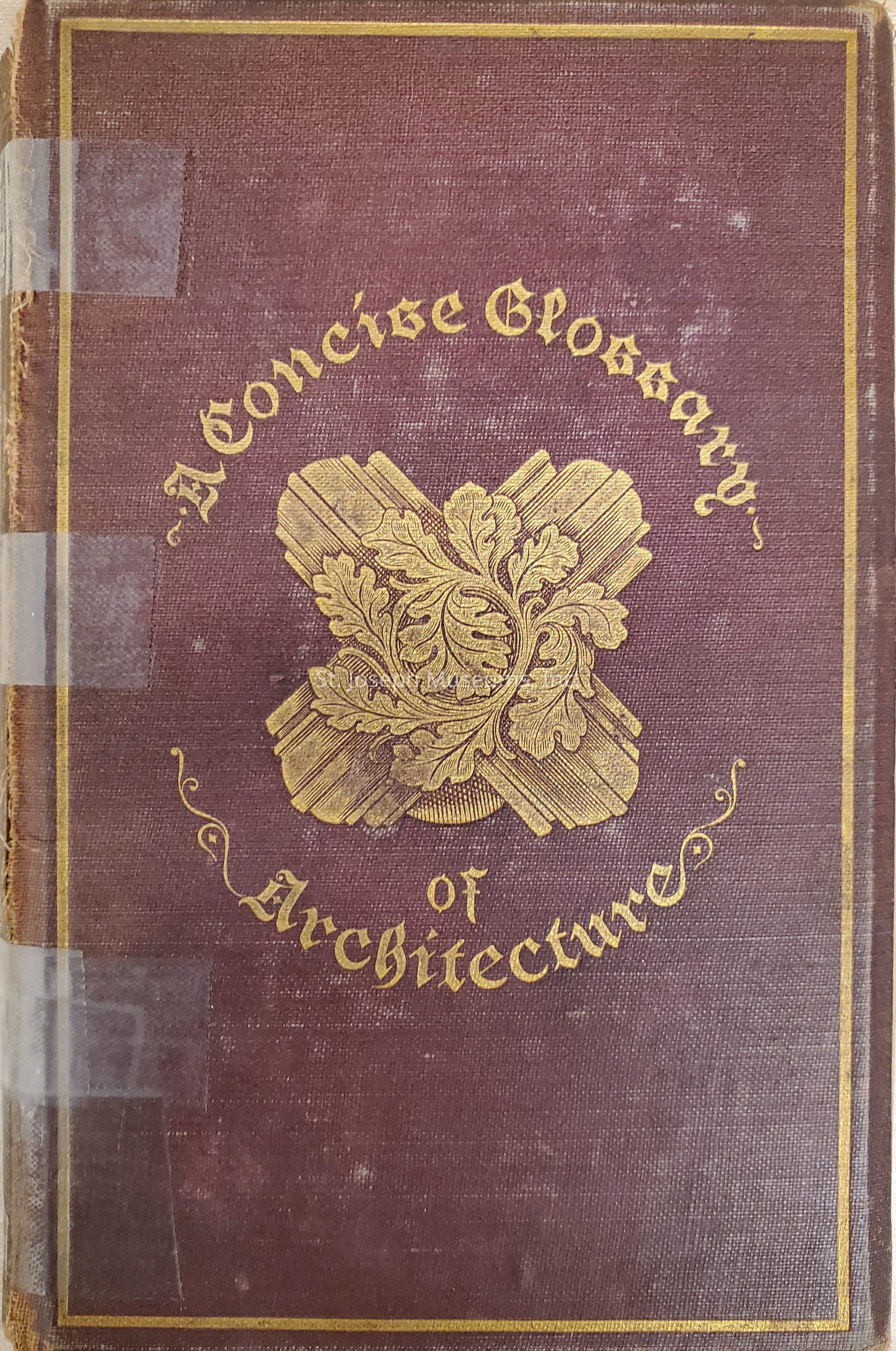 Concise Glossary of Terms used in Grecian, Roman, Italian, and Gothic Architecture was meant for reference and study. Copyrighted in 1882, looks well-used. The book is not in good condition. 343/Hardbound/Illustrations.