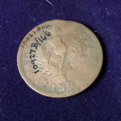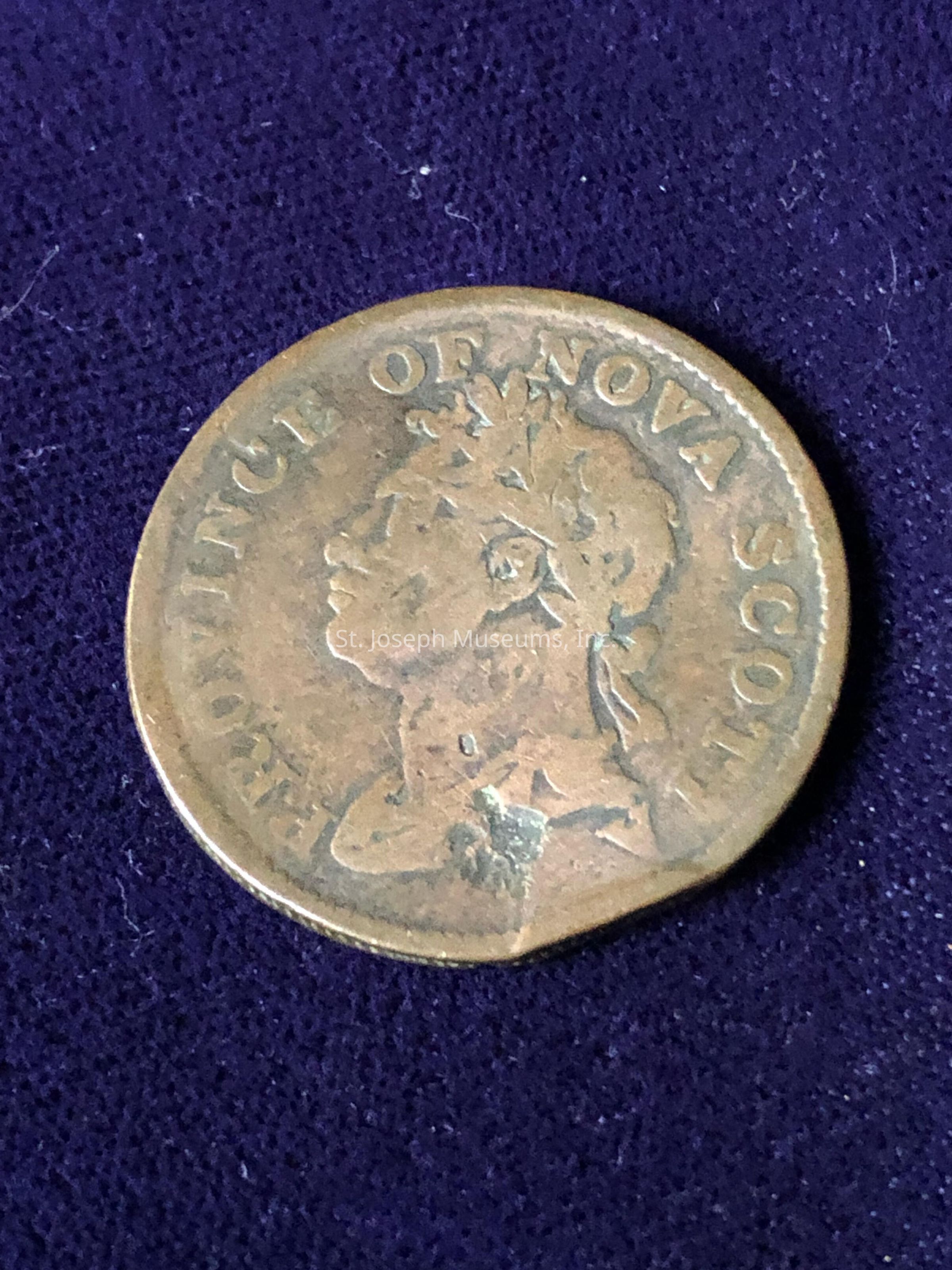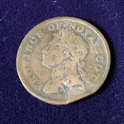 "Province of Nova Scotia" and head of a man on one side/"Half Penny token" on other side/copper?