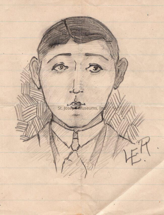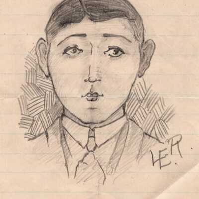 C = Young Man in Suit with prominent ears, Hair parted in center. Signed LER. on tablet paper, 4" x 5"