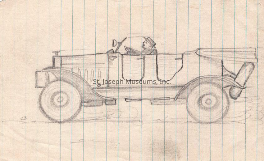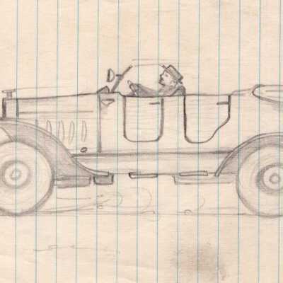 G = Open touring automobile, with man driving. on tablet paper, 8" x 5"