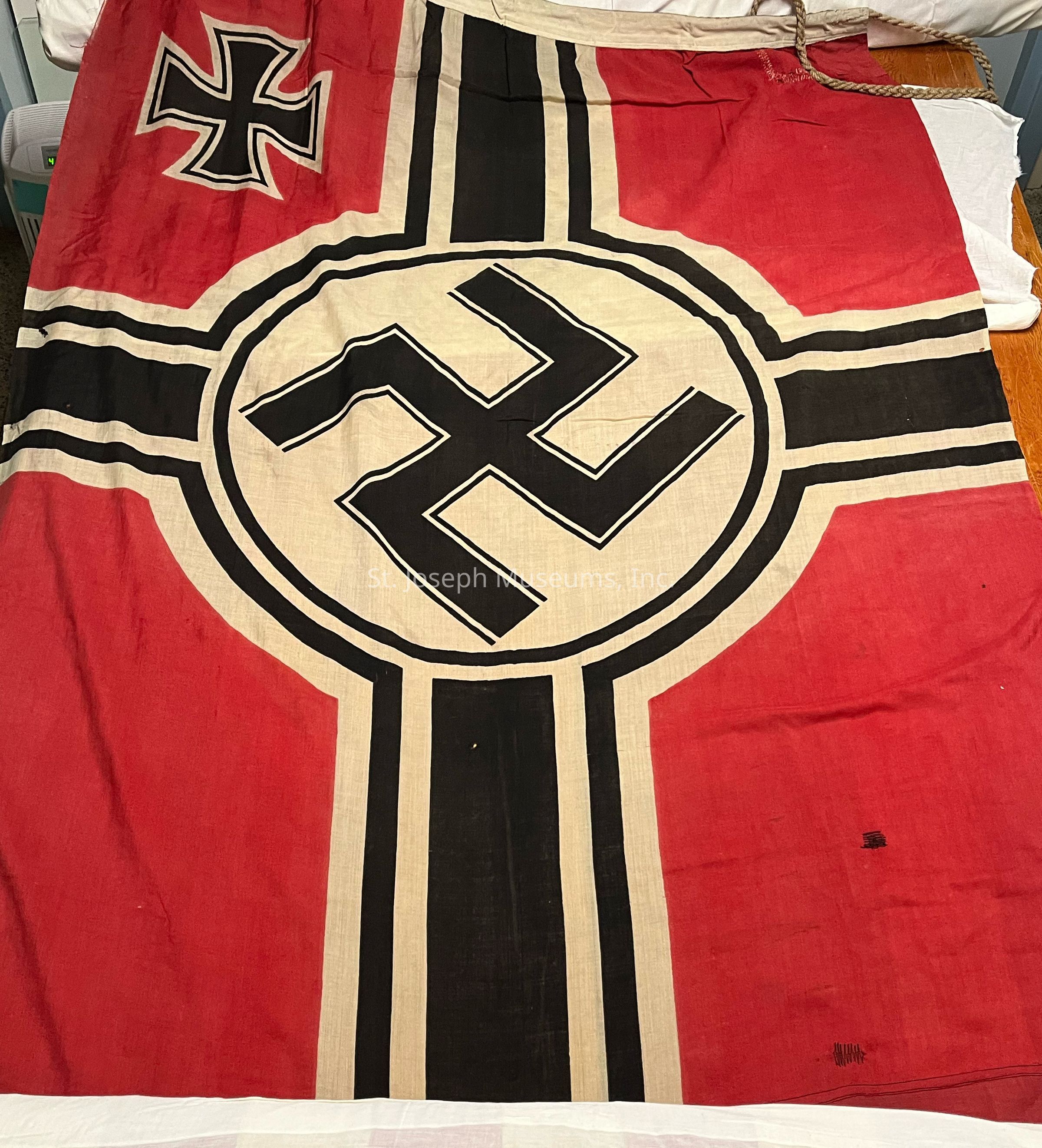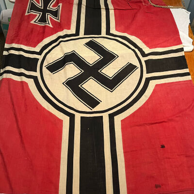 GERMAN FLAG/RED& BLACK&WHITE/LARGE SWASTIKA IN CENTER OF WHITE/BLACK CIRCLE/CROSS DES. IN CORNERS/"REICHKRIEGFLG"/