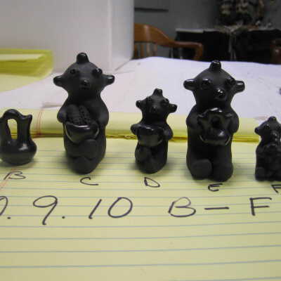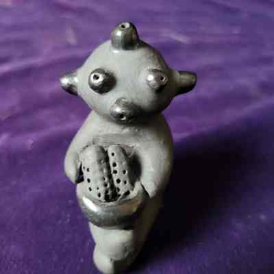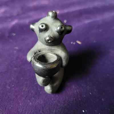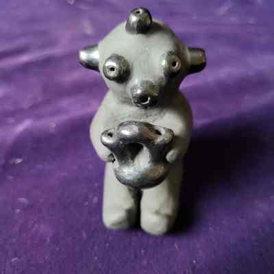 C - Kachina/ pottery/Koyemsi or Mudhead/black/holding bowl with ears of corn/signed on bottom"Dorothy Gutierrez" /Navajo Potter