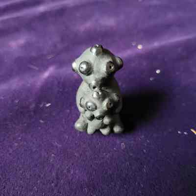 F - Kachina/pottery/Koyemsi or Mudhead (possibly story teller)/black/holding smaller mudhead figure/signed on bottom "Dorothy Gutierrez"/Navajo potter