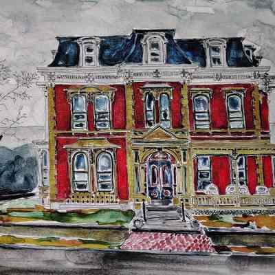 Color photograph and black and white photograph of a building on 517 north fifth st. There's also an image that has the watercolor effect through Adobe Photoshop.