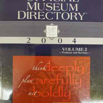 The Official Museum Directory, 2004, the 34th edition, is actually Volume 2 is published by National Register Publishing in cooperation with the American Association of Museums. A Foreword states that this is the most comprehensive directory of America's diverse community of museums, zoos, historic sites, and other related institutions. Available through the American Association of Museums is a diverse collection of information and publications of value to museums. This volume contains Products, Services and Suppliers and also contains an Index.