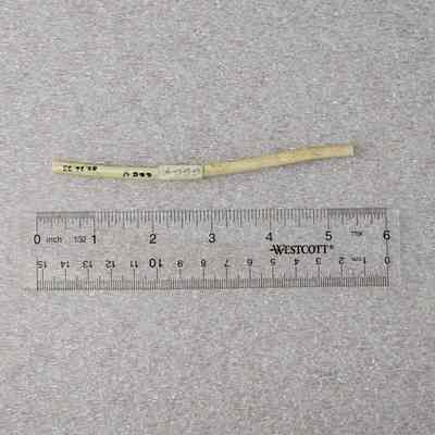 PIECE OF BONE/ WHITE AND SHINEY / HOLLOW/ NOTCHED AT ONE END Worked artifact