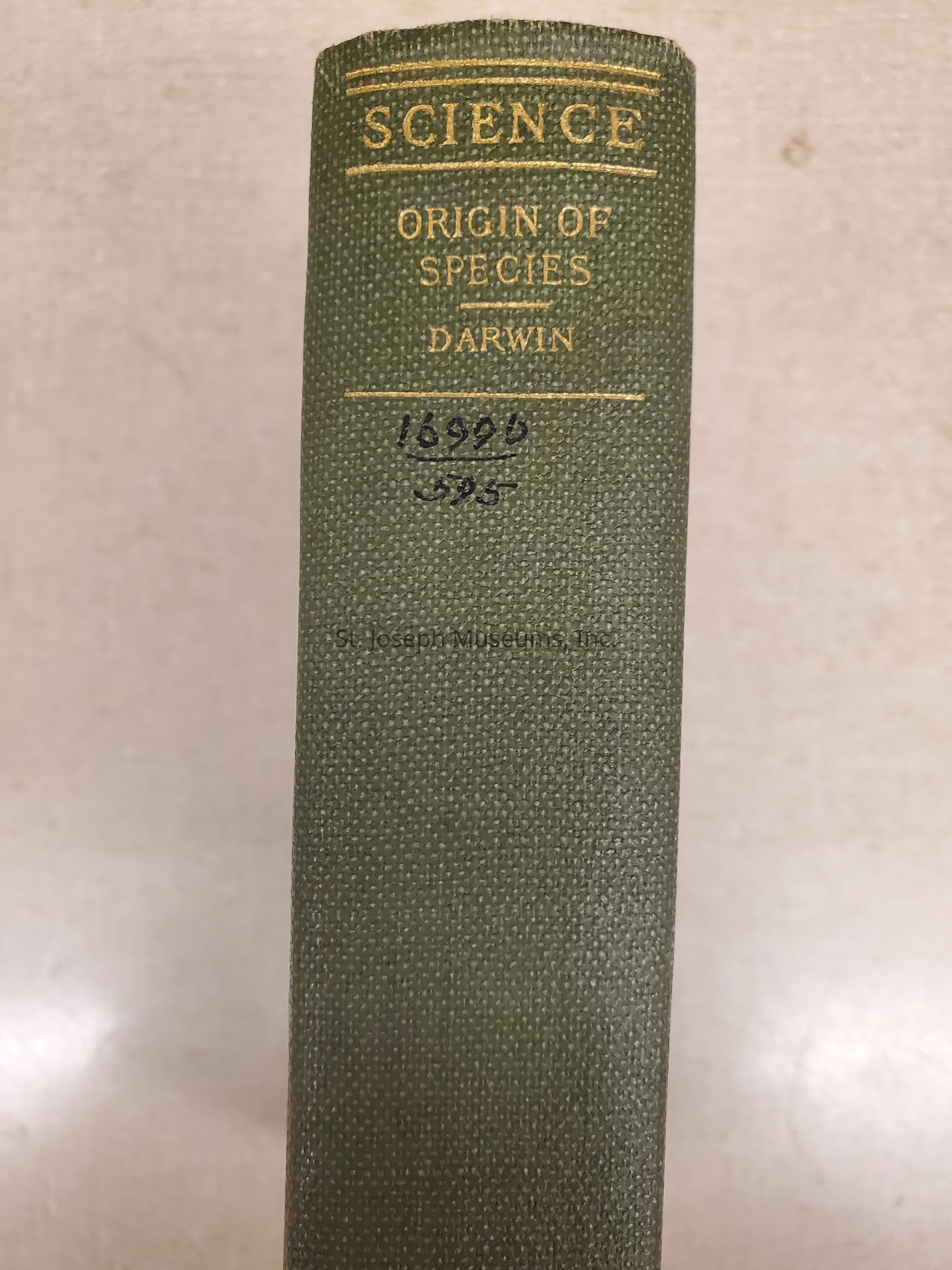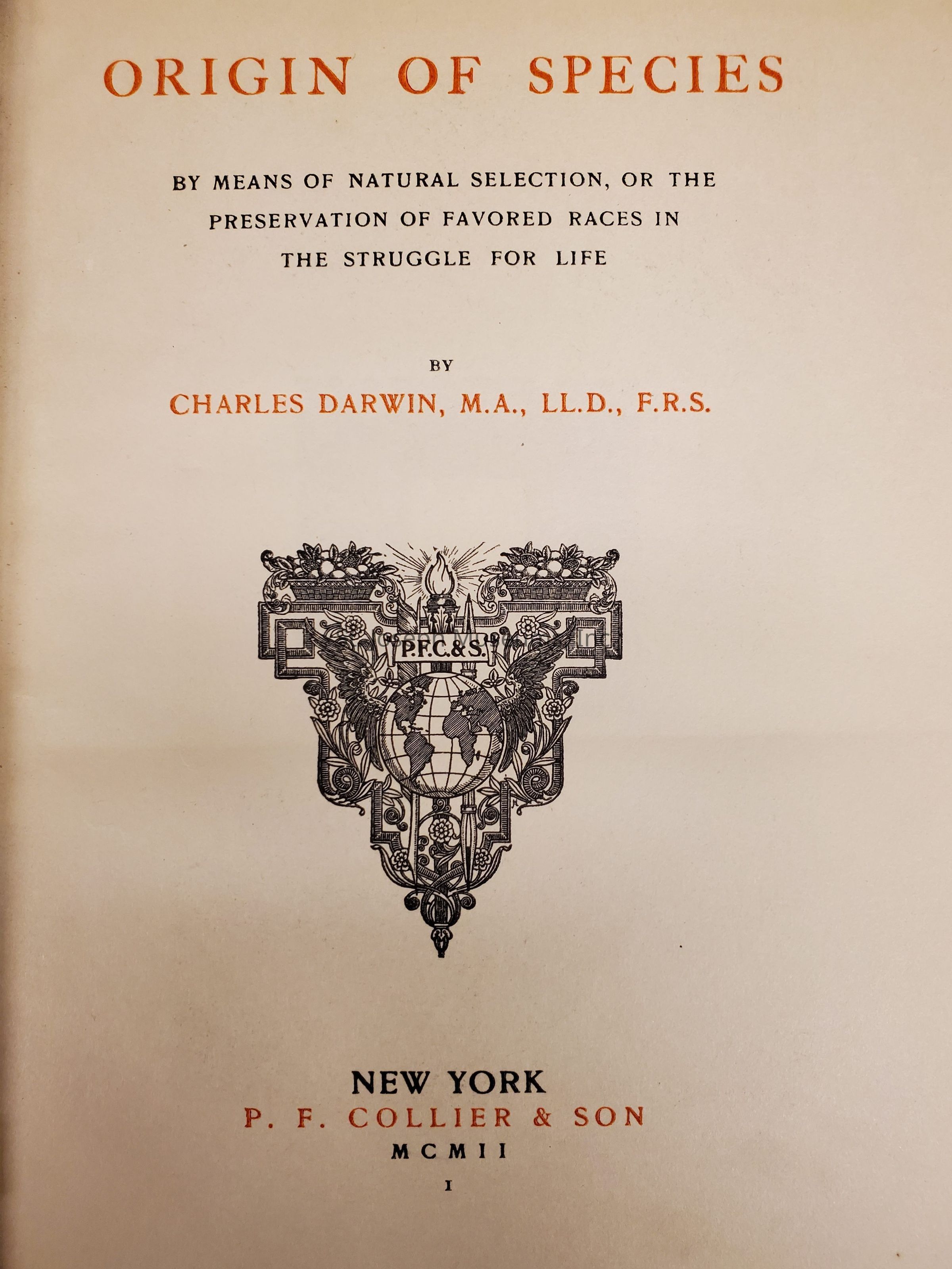 This book is Origin of Species, by Means of Natural Selection, or the Preservation of Favored Races in the Struggle for Life by Charles Darwin. It is #1 in the series. It appears that Darwin first published his information in 1859 and perhaps corrections and additions were made in the years following.