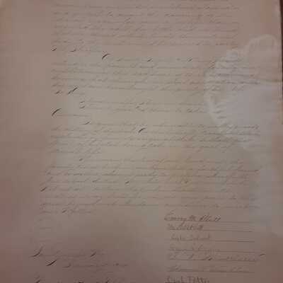 Memorium for Lena Fischer dated February 4th, 1912. Signed by Mr. and Mrs. Emory M. Platt, Lyda Calvert, Hazel A. Drain, P. R. Morrissey, Clarence P. Thompson, Opal Potter, and Lorena Vaeth.Context