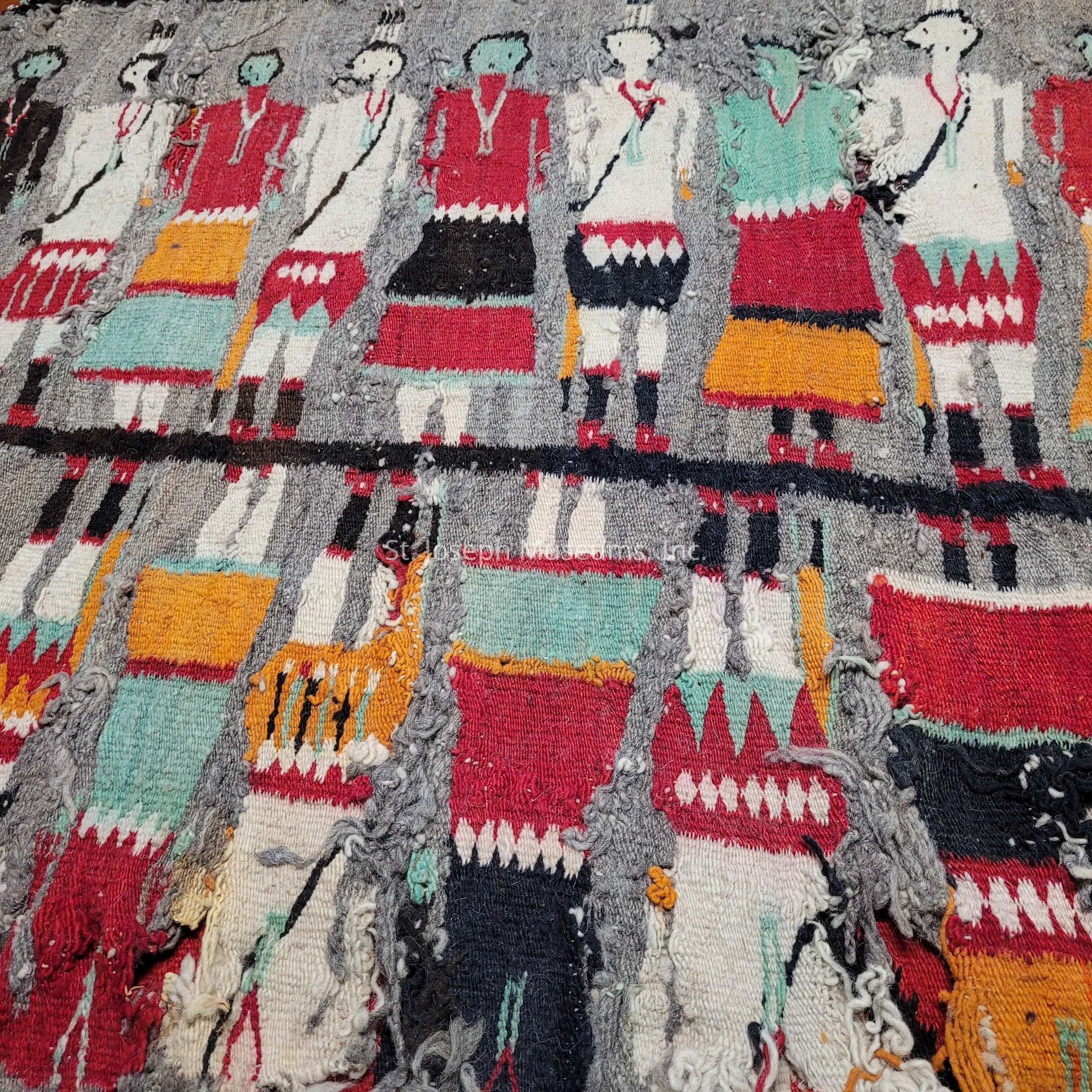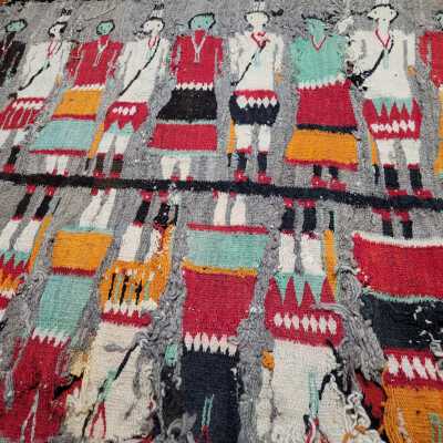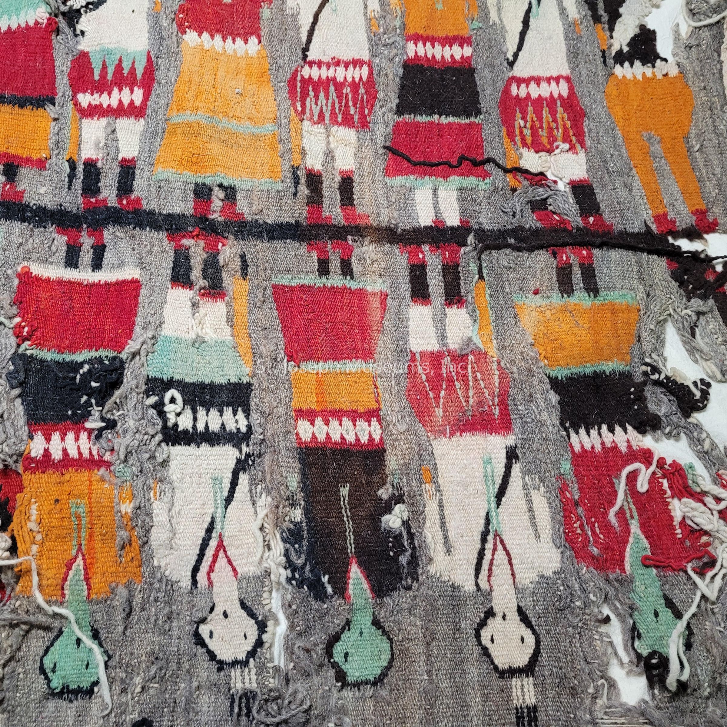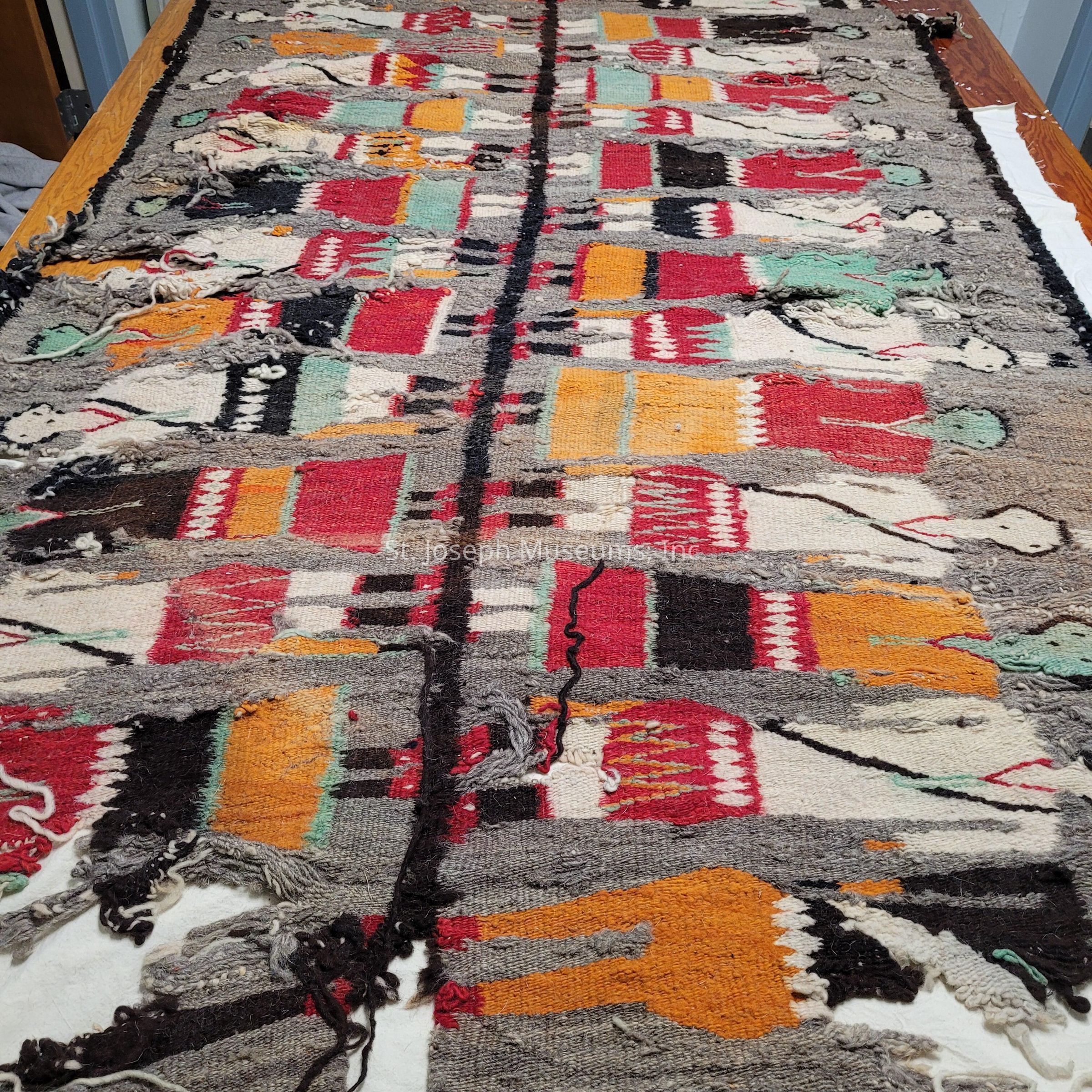 The blanket today is in poor condition, probably in part to its loosely-woven construction and that it likely was on display at the Museum for decades. It would benefit from some conservation. Further research into the orange and teal dyes may lead to more clues.