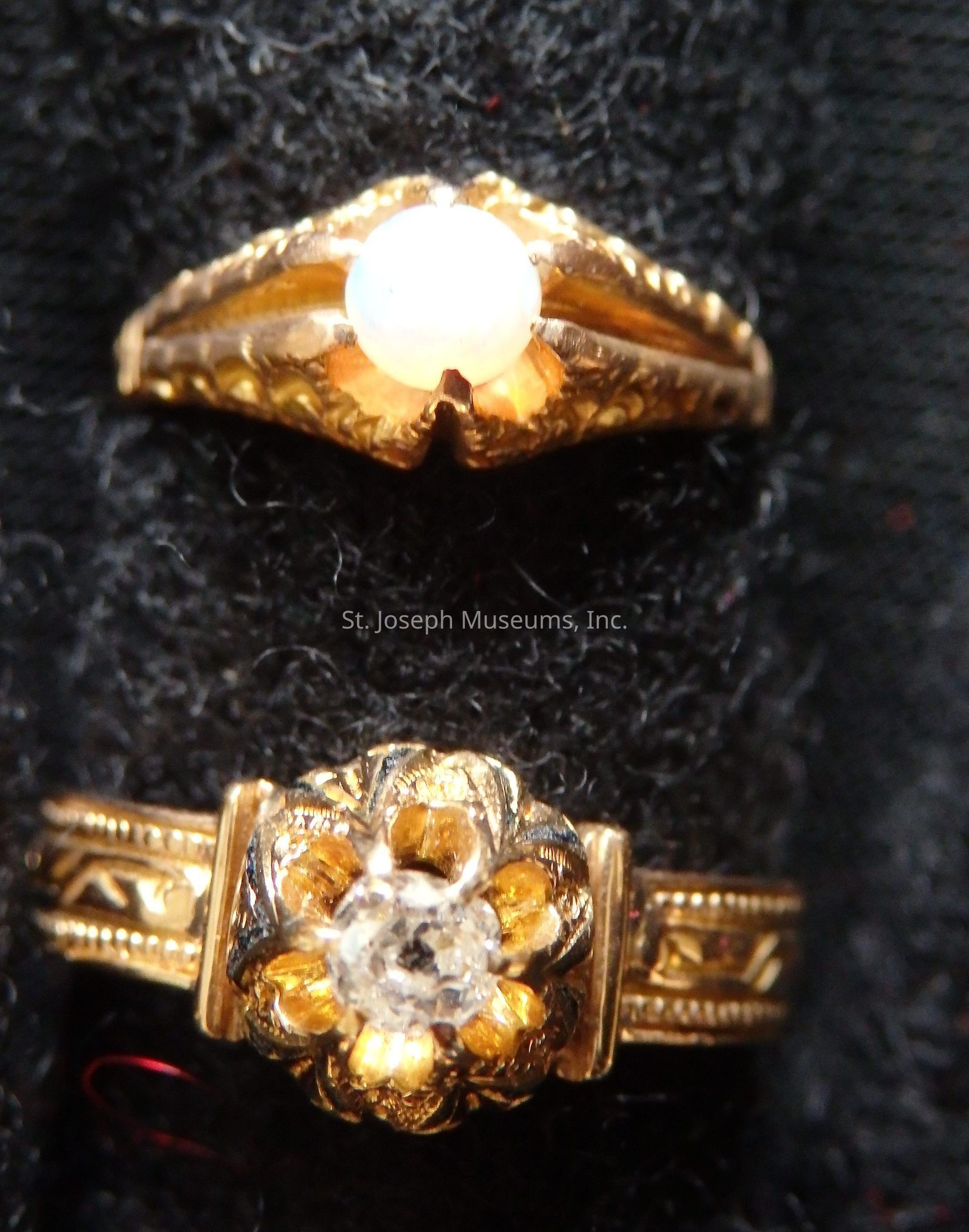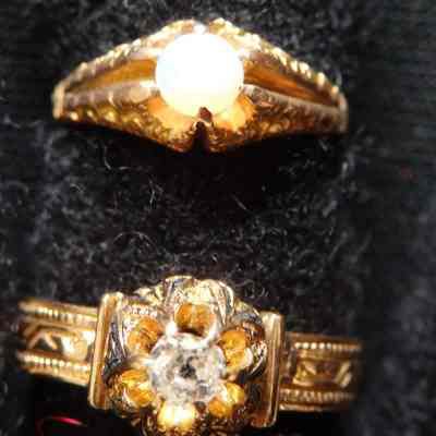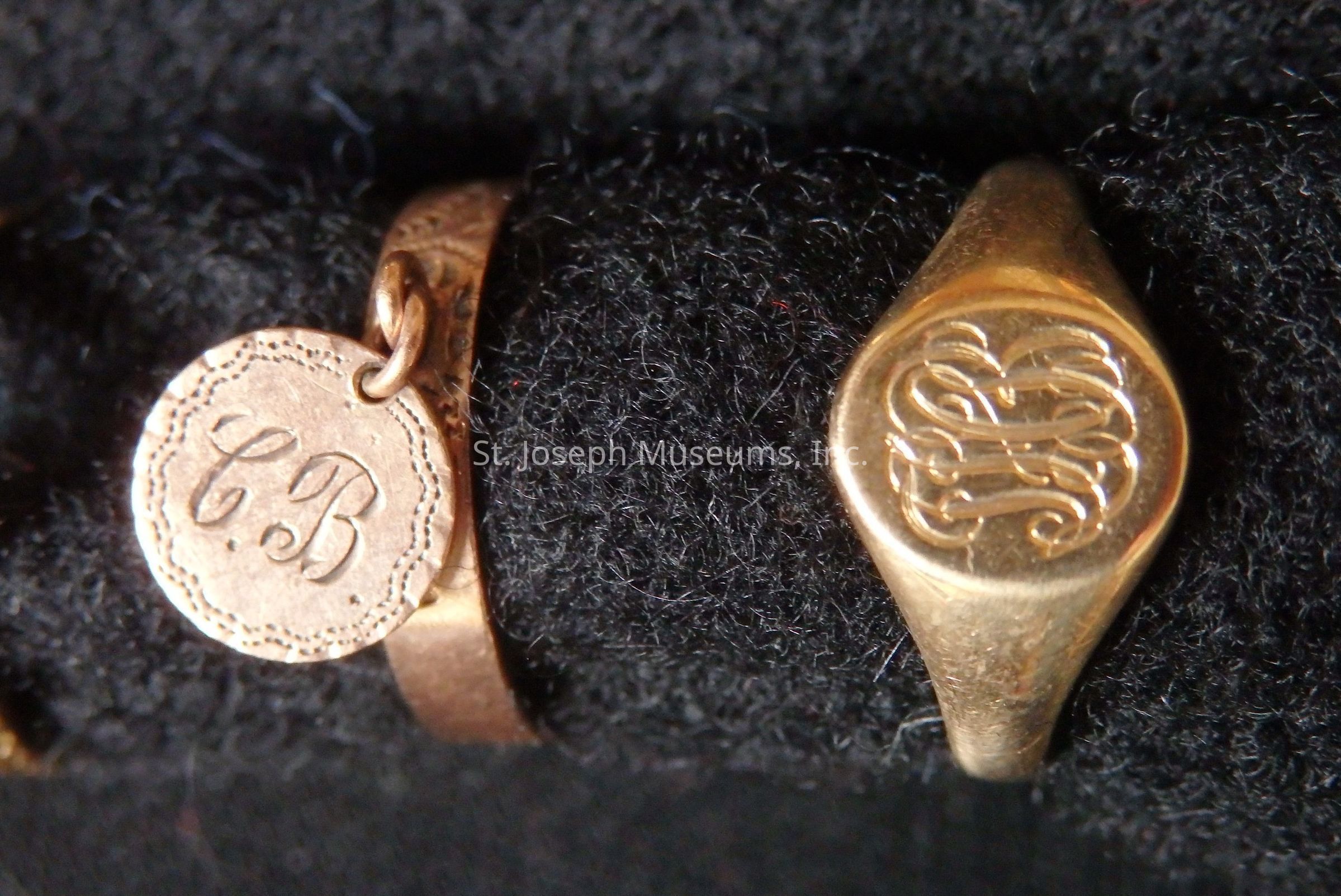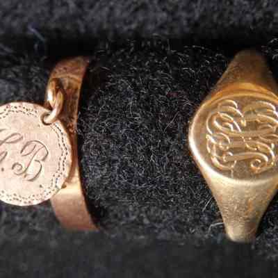 1909" and monogramed "??B". The second ring must be a very old ring passed down through the Barrow family.Context