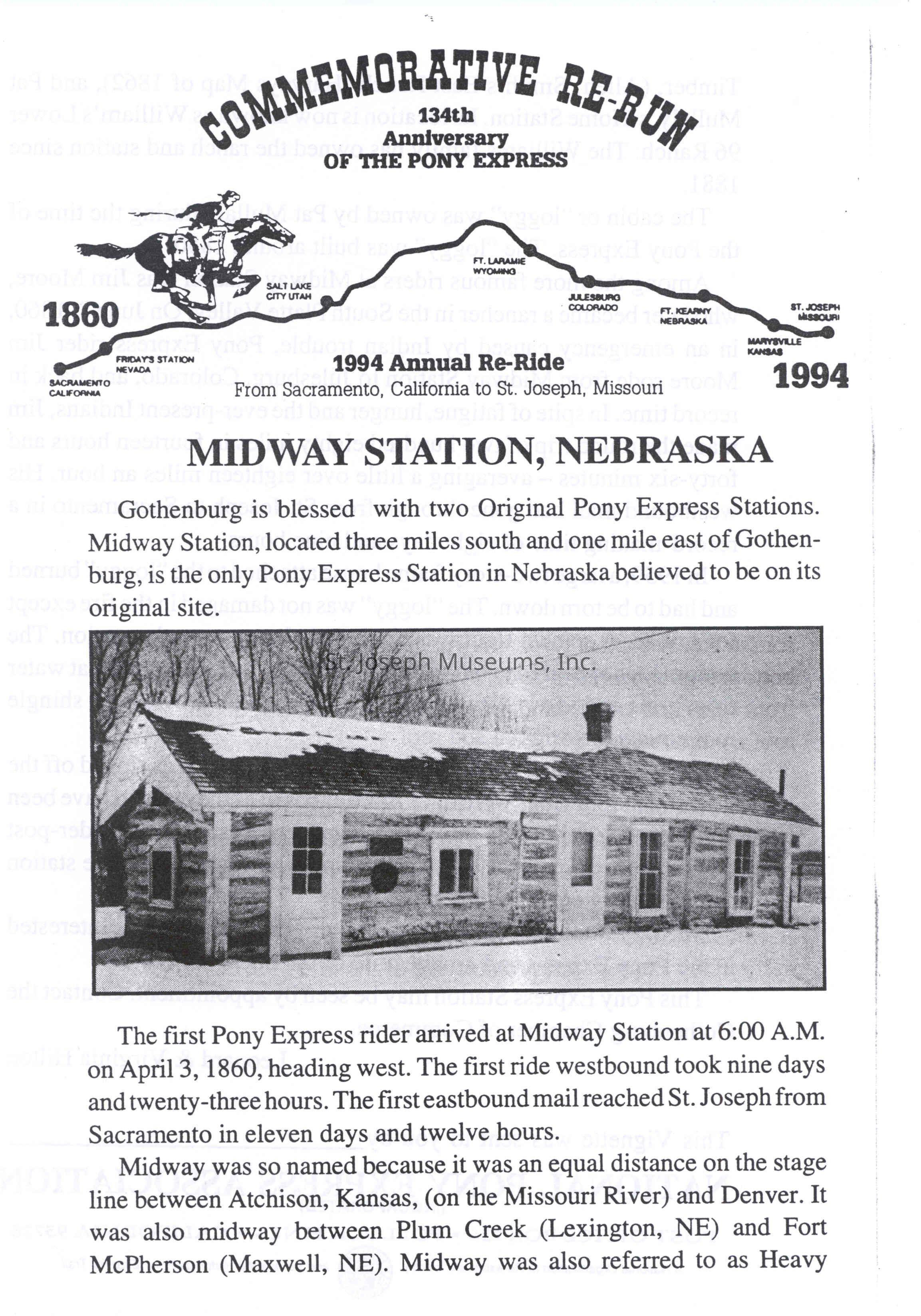 Nat'l XP Assoc.Midway Sta.,NE 1994 rerun letterEntry/Object ID