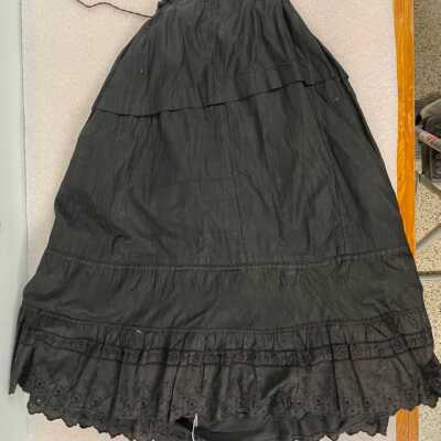 Petticoat/Black/Floral designs along bottom fringe/Shoestring tie around waist/34.5"x37"