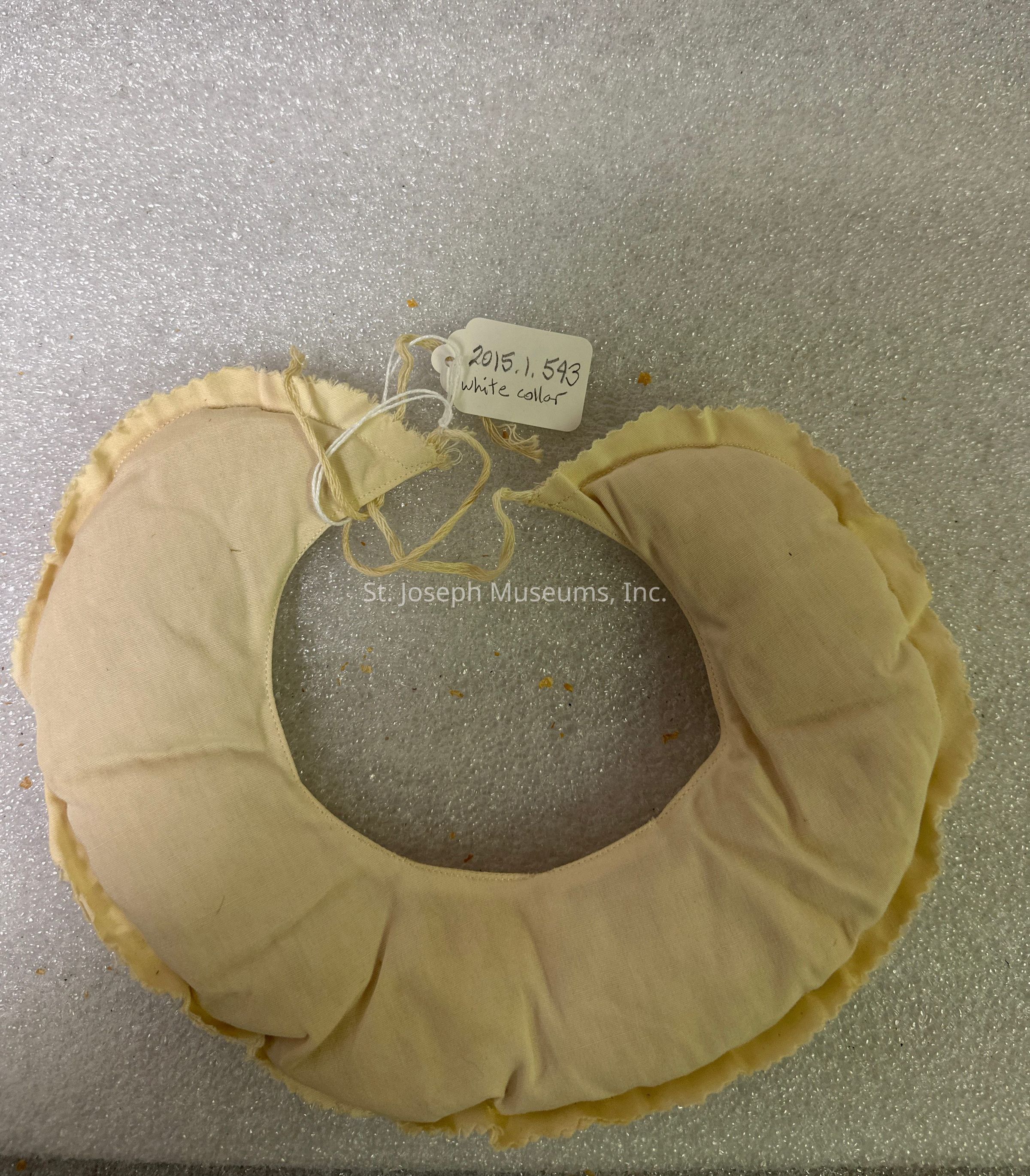 White puffed collar, rounded with strings at end to tie in back, possibly collar filler to make outer collar stand up.