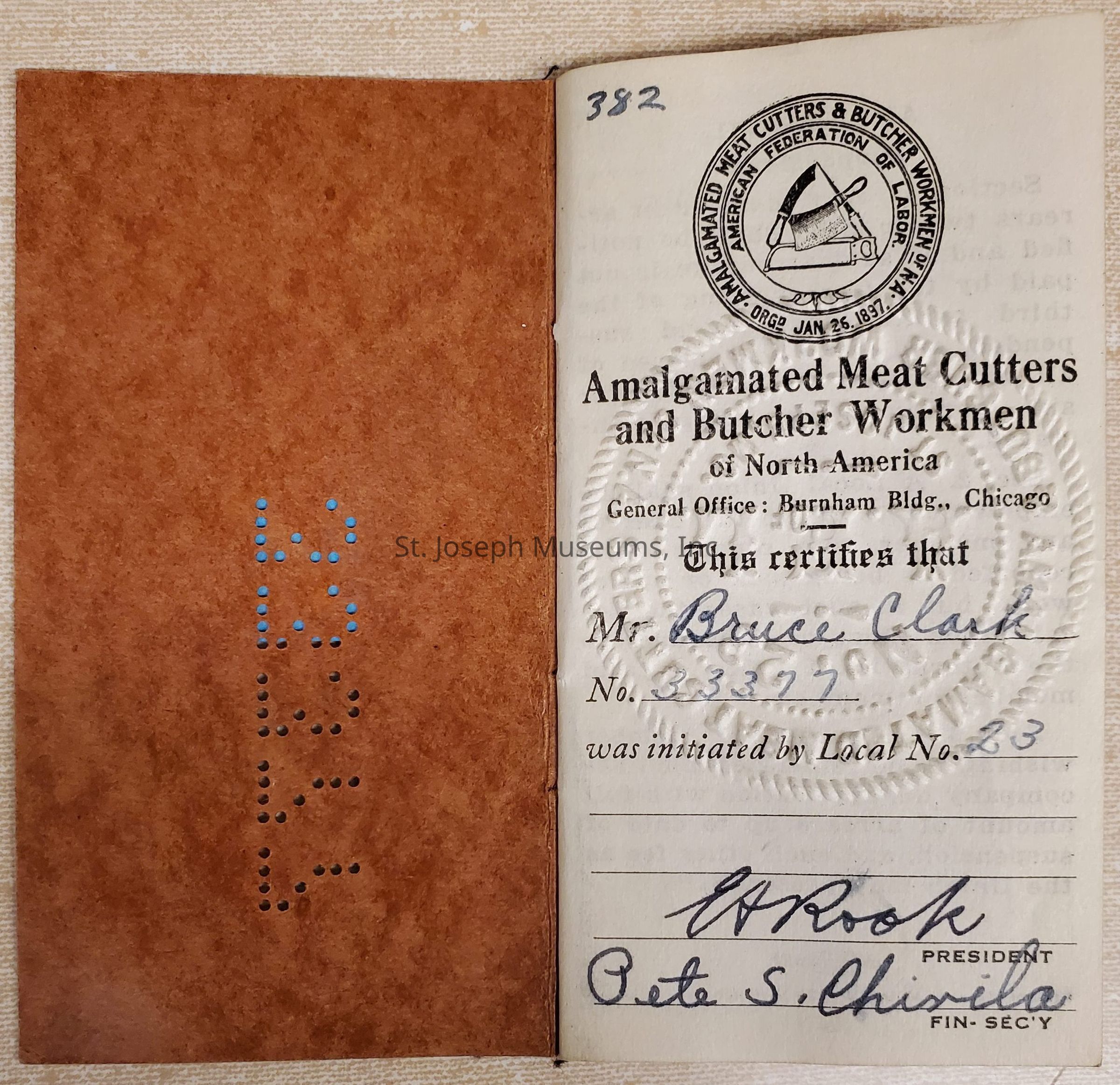 Amalgamated Meat Cutter & Butchers Workmen Dues Booklet, 1933Entry/Object ID