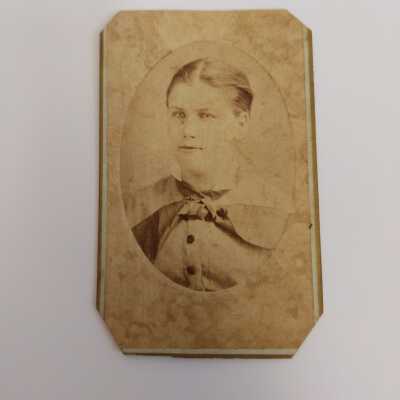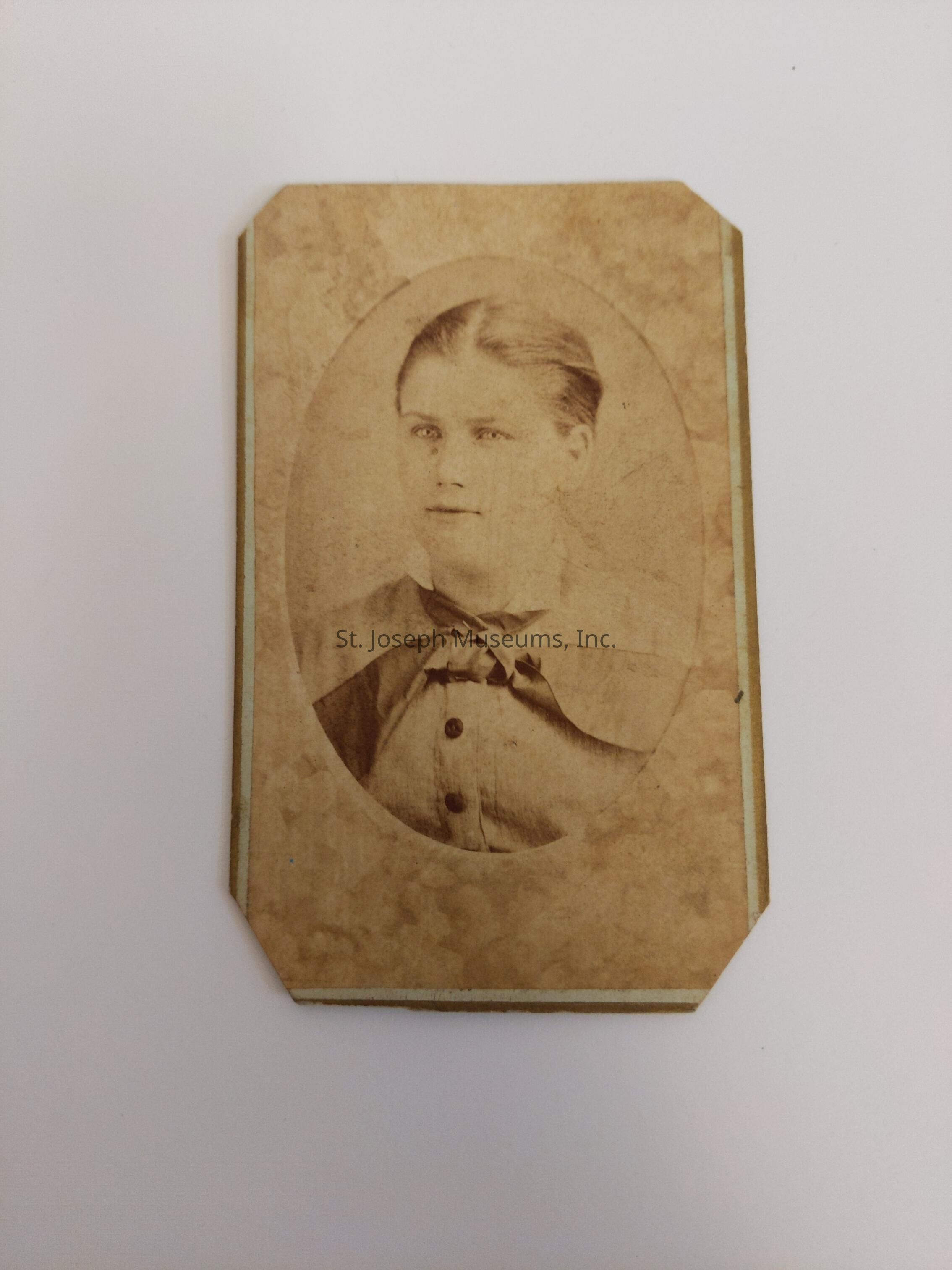 $2 Alex Lozo Photograph. Black and white Photograph of a young woman. Back reads, "Photographic Gallery of Art. Alex Lozo. St. Joseph, Mo. Negatives Retained For Future Orders." 4"hx2.5"w