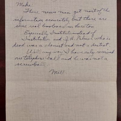Envelope addressed to Mike Fisher with handwritten note from Mett Shippee and news article "Archaeology Surely Not in Vain", Kansas City Star, January 6, 1972