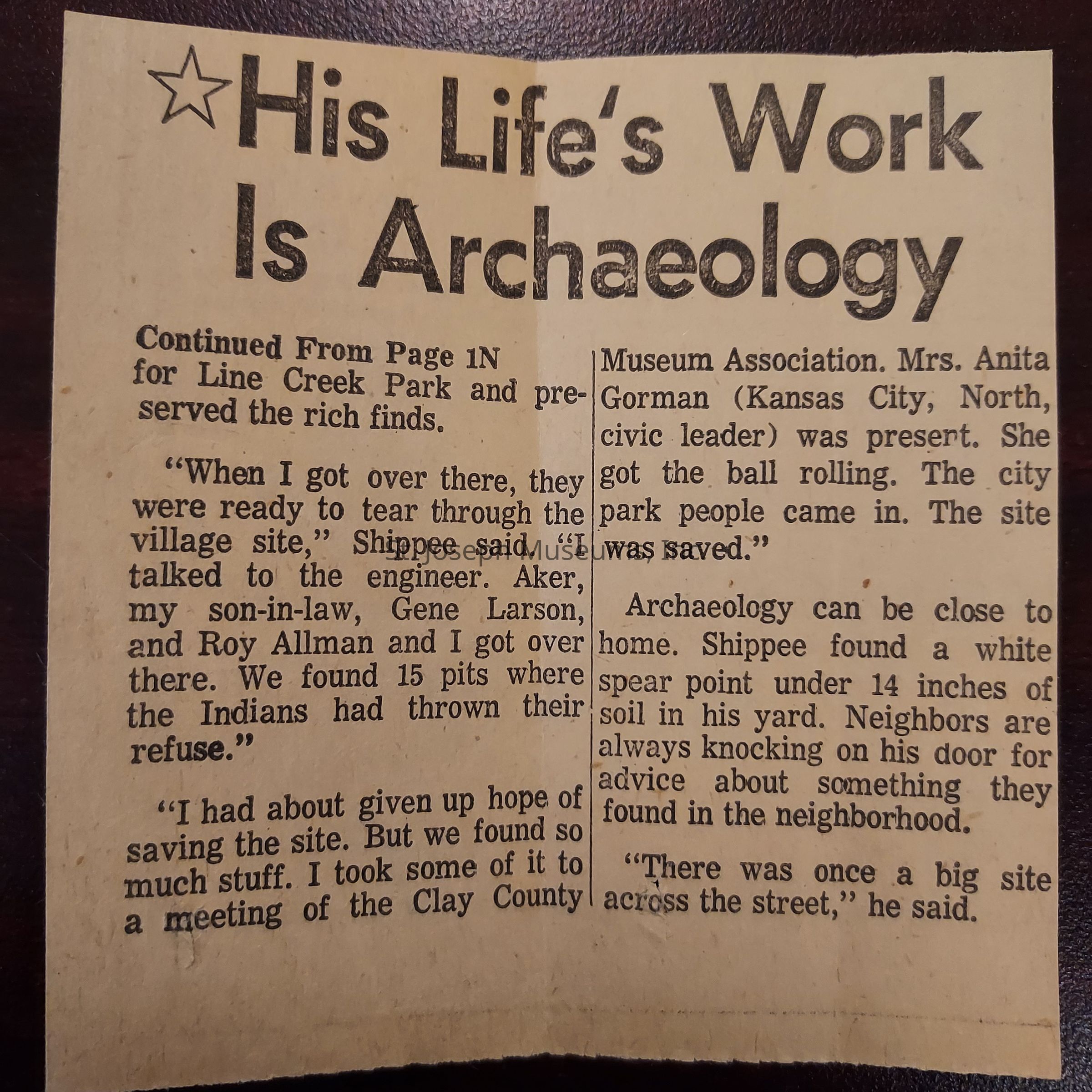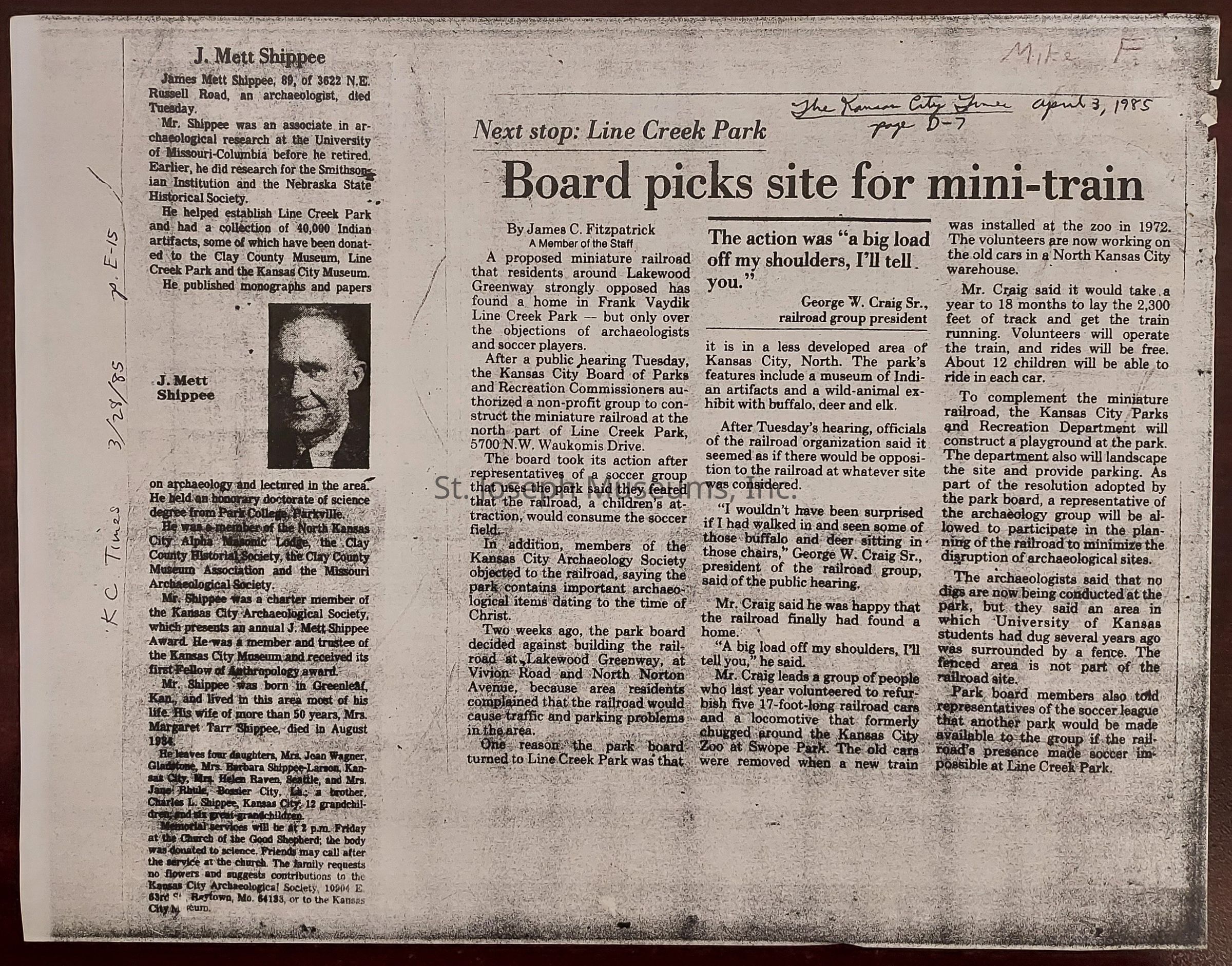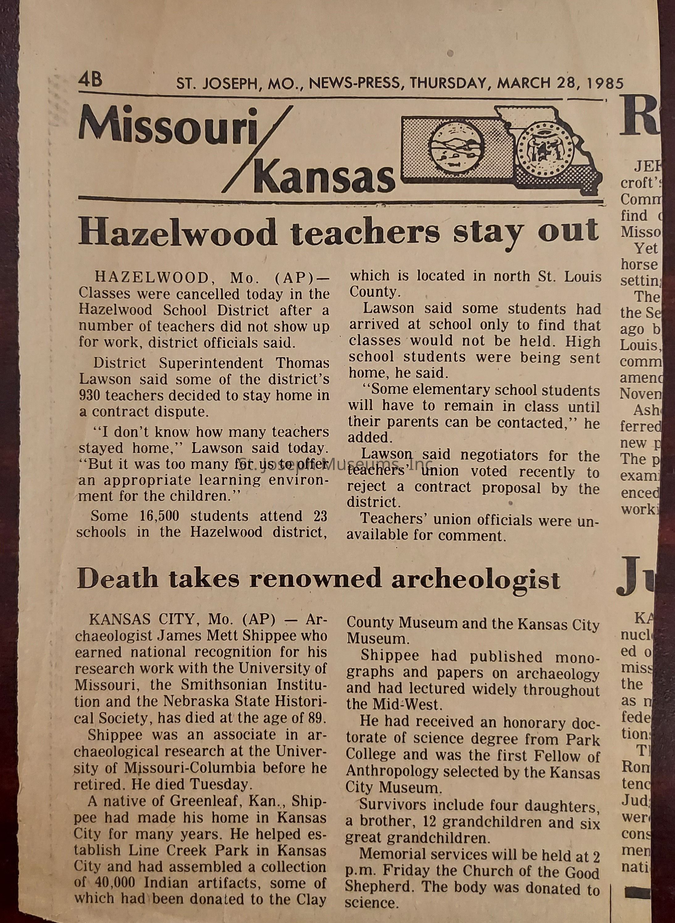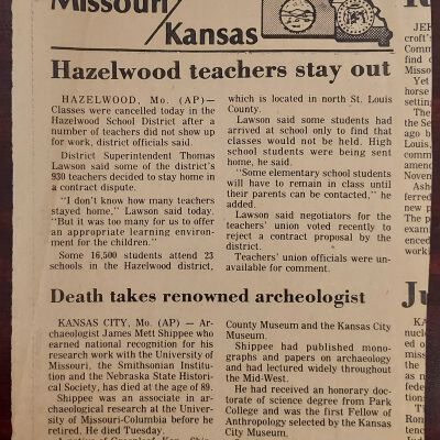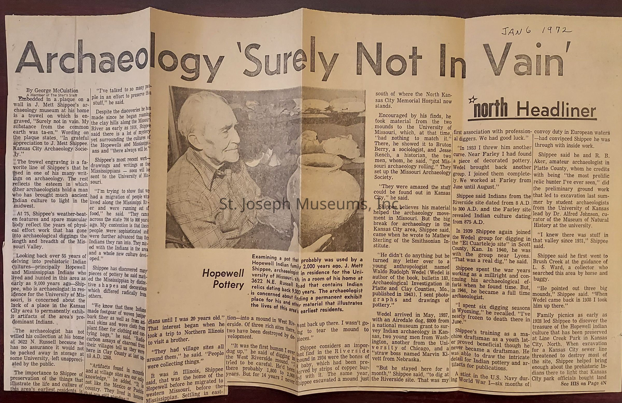 Shippee Collection and Biographical Information on J. Mett Shippee, 1973-1985. News articles and correspondence related ot the archaeological collection of J. Mett Shippee. The family of Shippee has given the collection to the St. Joseph Museum on permanent loan.