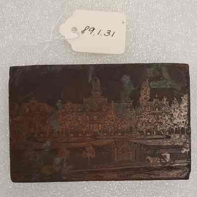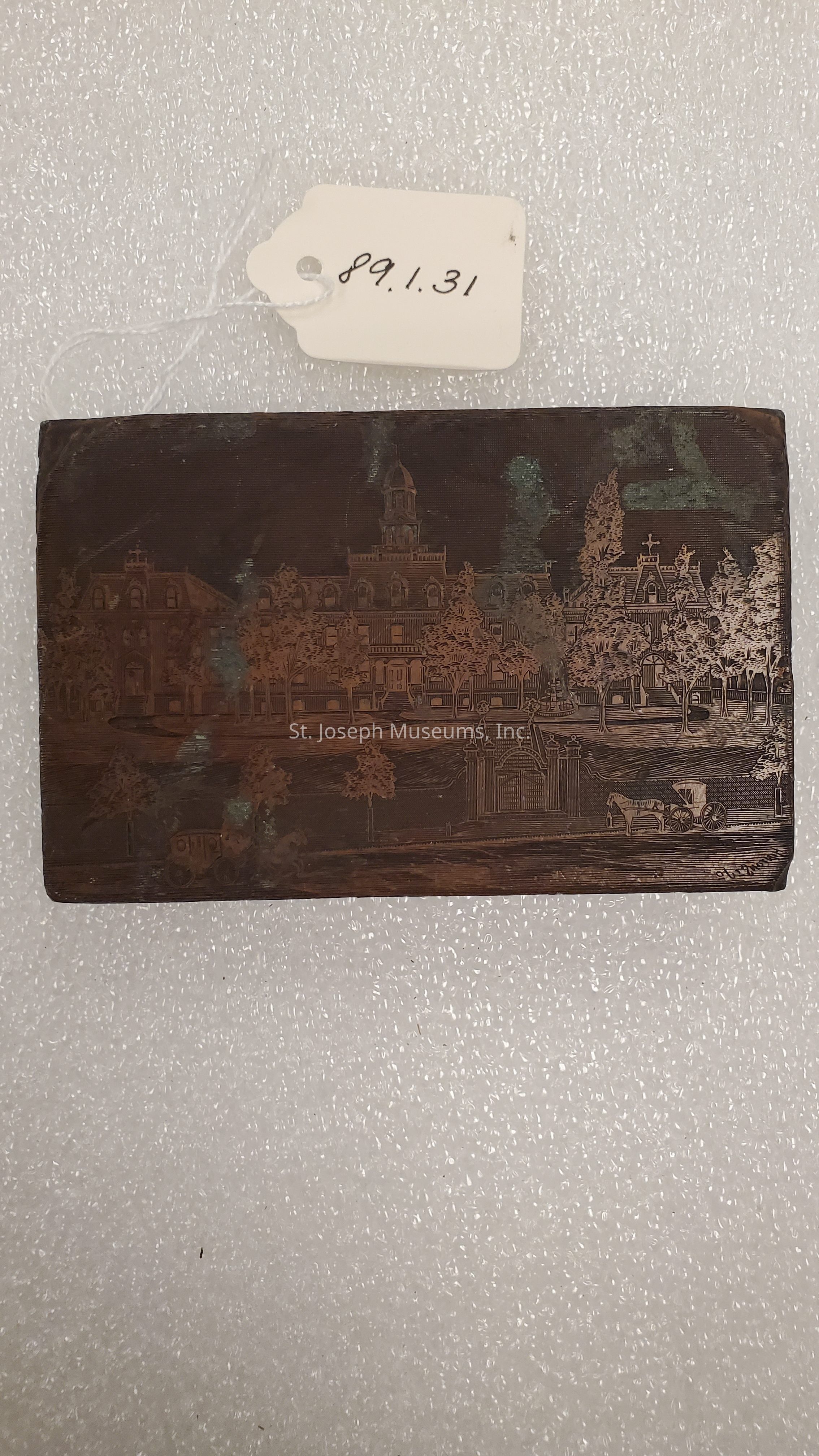 Etched plate on lead base/copper probably/View of Convent - 12th and Messanie/2 carriages with horses