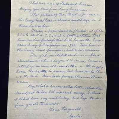 I haven't written Uncle Leo yet, but will within the next two days. I may even get off a short letter to him tonight. It's 9:35 right now, lights in the barracks have just gone out, and I'm squatting on a stool here in the latrine right by the stove.