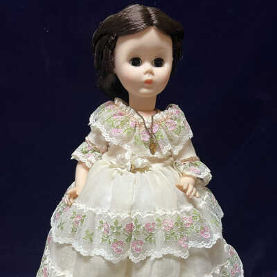 Julia Tyler became first lady after her marriage to the President in 1843. Although she acted as First Lady for only eight months she loved her position and made the White House a gay and lively place. She was extremely interested in national politics and strongly supported her husband’s policies, such as the annexation of Texas. When John Tyler rooks office in 1841, his First Lady was his wife Letitia. Upon her death a year later, their daughter also named Letitia acted as first lady until the President remarried. The First Ladies of the United States represent a social and historical cross section of our country from its beginning until today. This collection from the Madame Alexander First Ladies of the United States represents the wives of United States presidents. Madame Alexander’s goal has always been to design dolls that are works of art and with all the charm and grace of the era they represent.