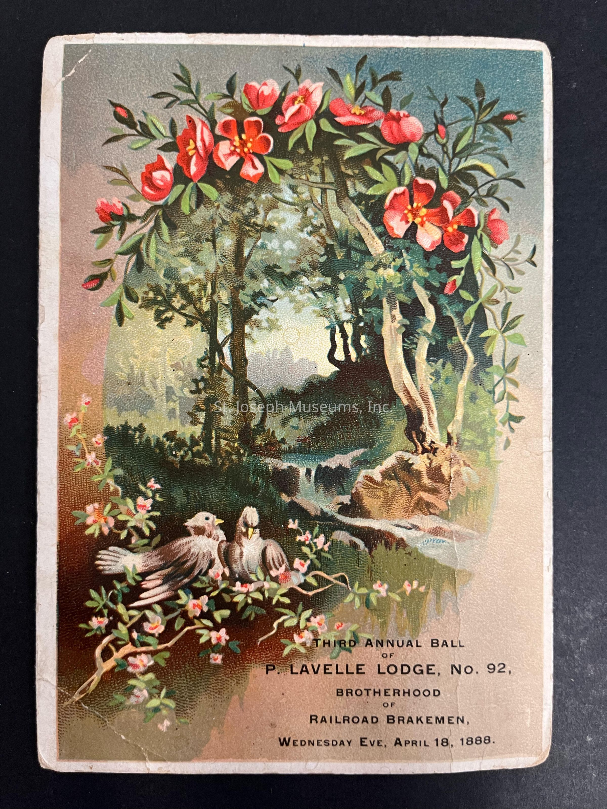Invitation - "3rd Annual Ball of P. Lavella Lodge No. 92 - Brotherhood of Railroad Brakemen" 04/18/1888.