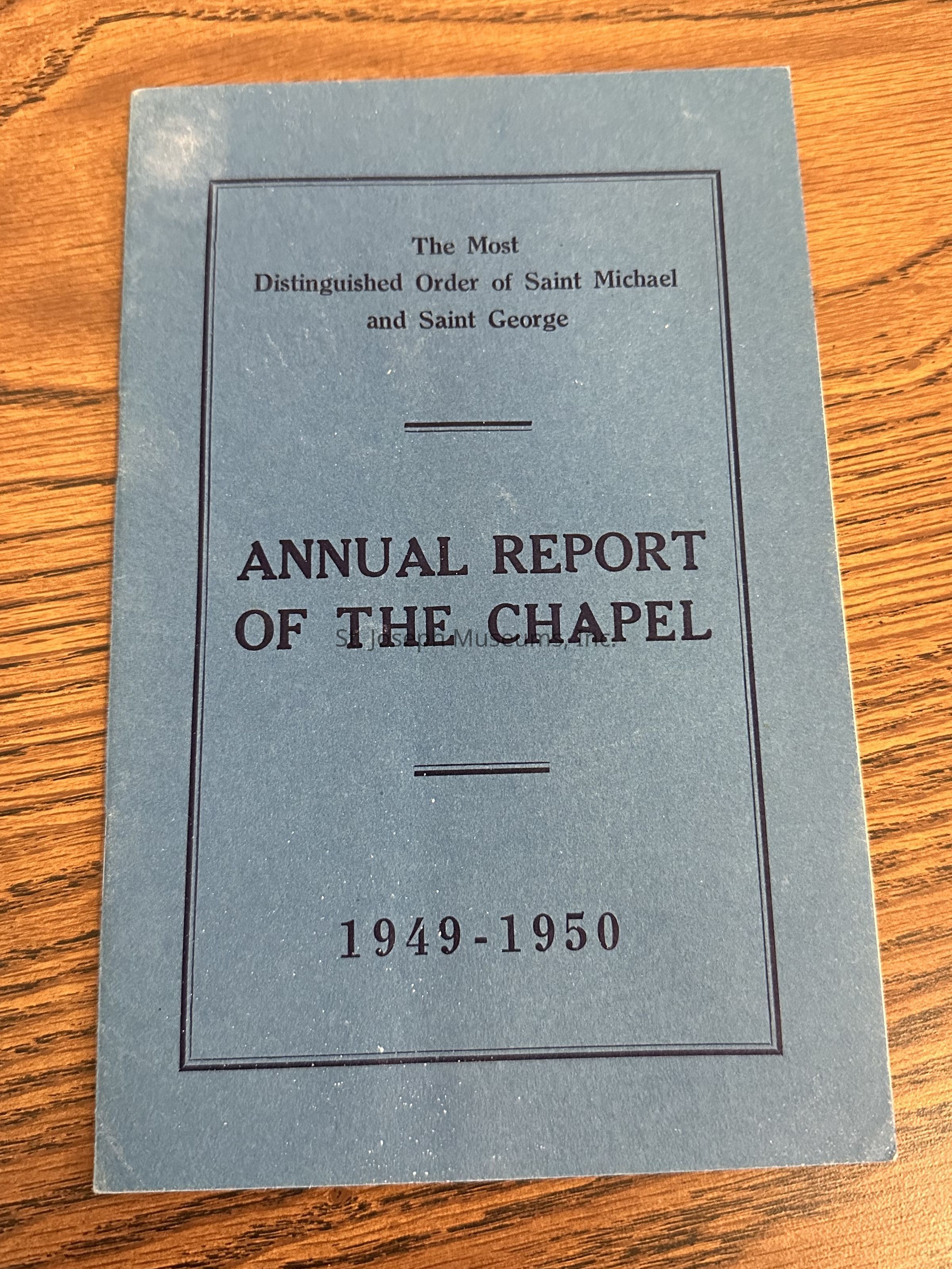 Distinguished Order of Saint Michael and Saint George, Annual Report of the Chapel, 1949-1950. This booklet was the annual report of the Chapel 1949-50. Companions of St. Michael and St. George, Col. John D. McNeely who died in December 1954 was a companion of St.Michael and St. George.