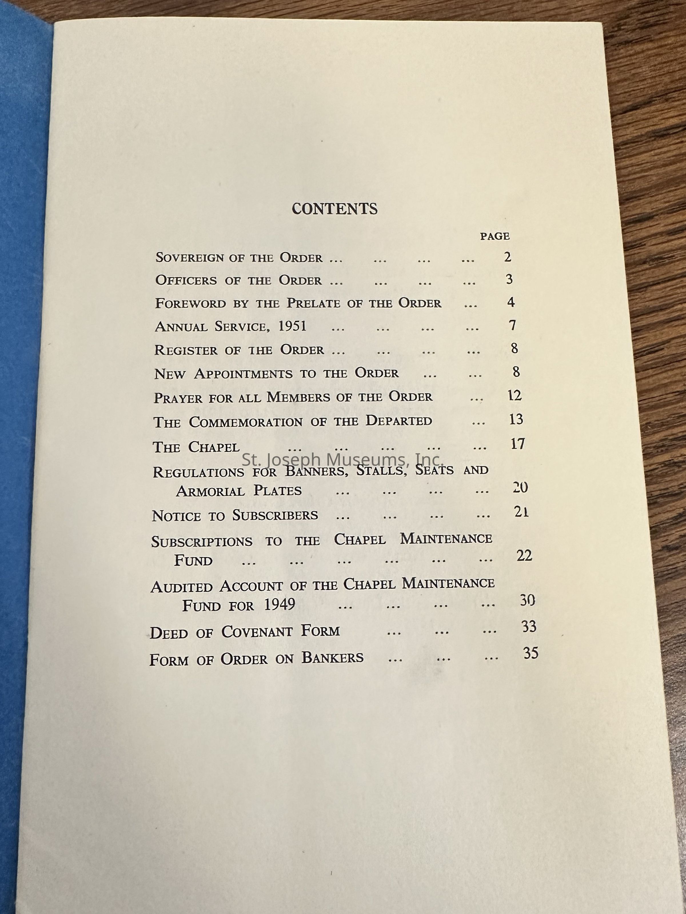 Distinguished Order of Saint Michael and Saint George, Annual Report of the Chapel, 1949-1950