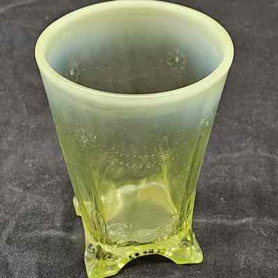 WATER GLASS/MILKY RIM/SWAG LEAF DES/4 FOOTED+