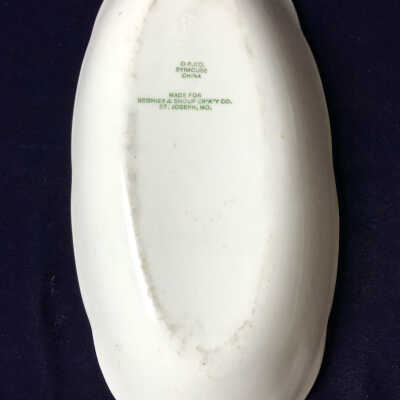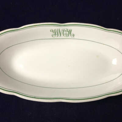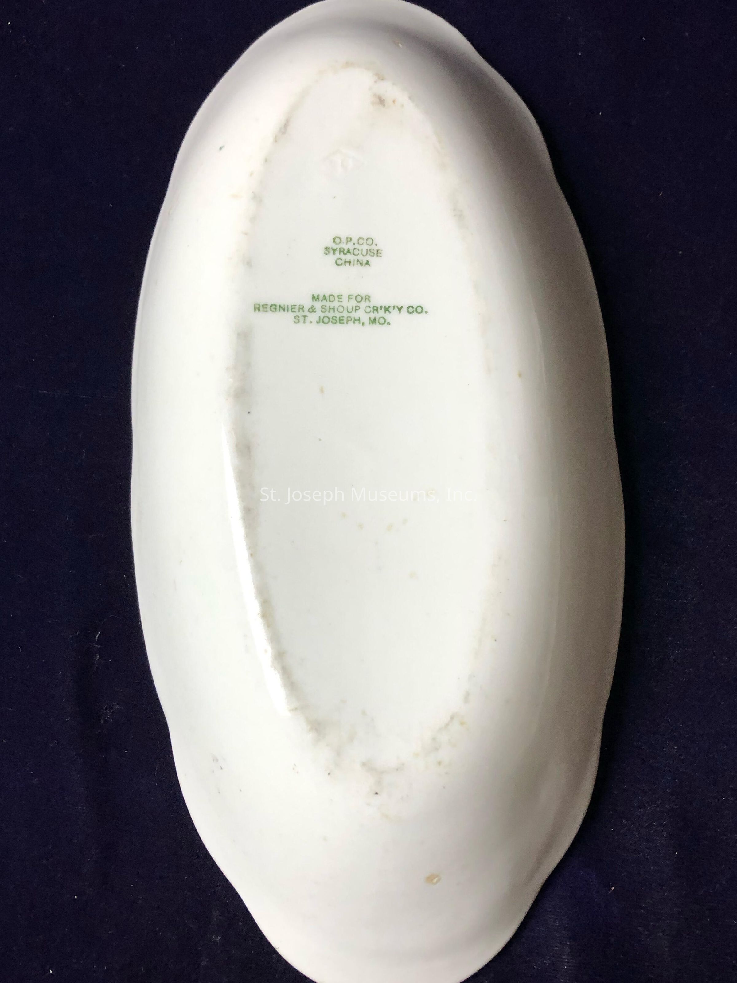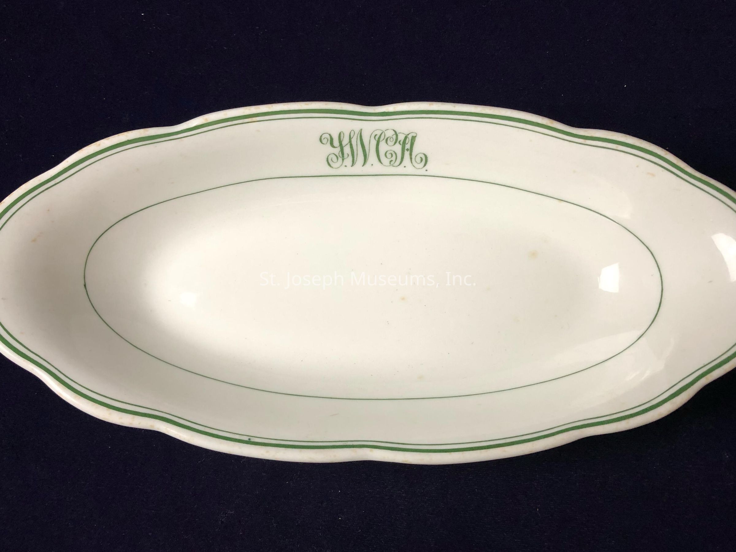 White and Green Ceramic Dish from the YWCA in Saint Joseph, MO.Context