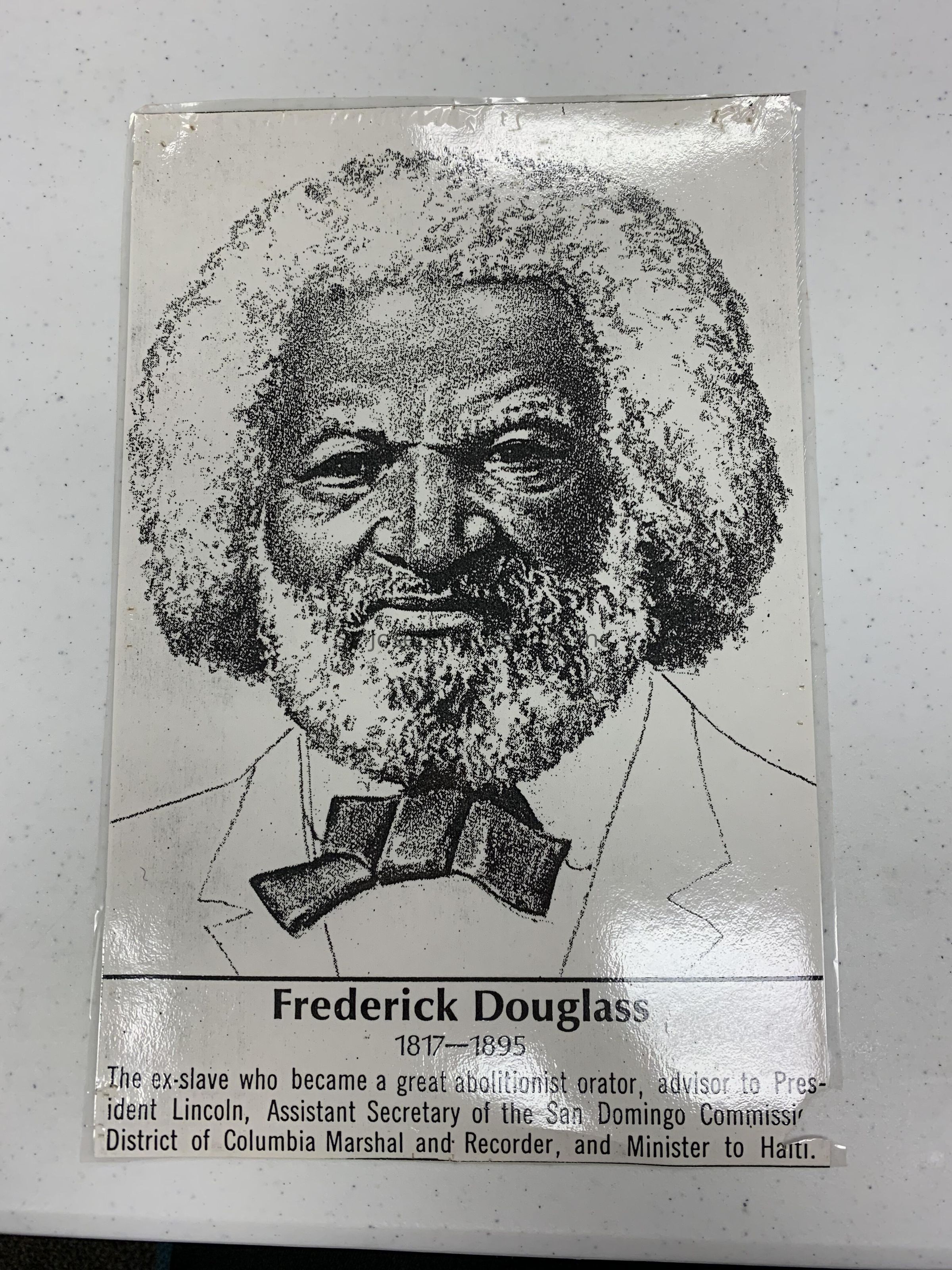 Drawing of "Frederick Douglass 1817-1895 great abolitionist orator advisor of President Lincoln, etc."Lexicon