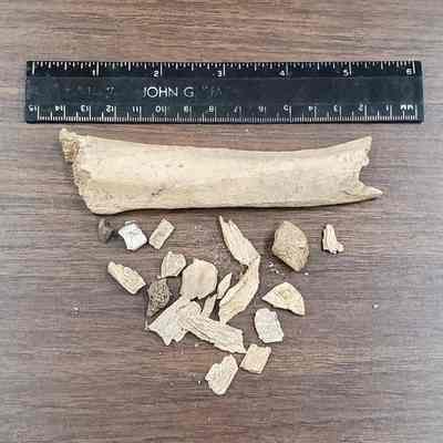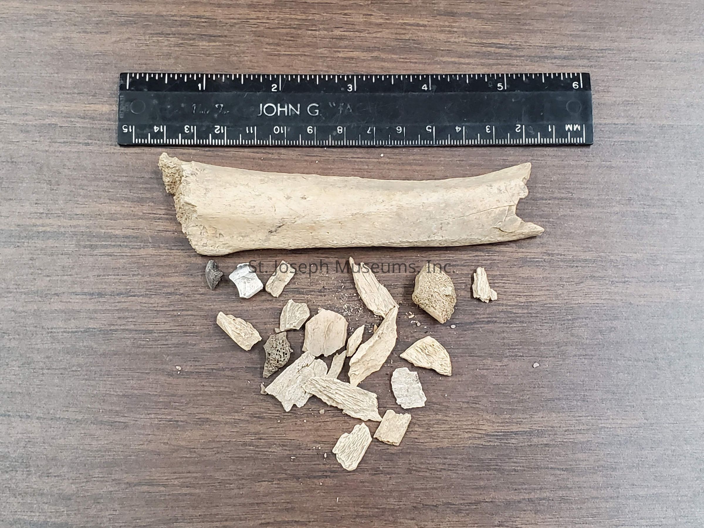 23BN1 King Hill Site Bag 599 Square 1 Level 18 Unidentified Bone Count 1 bag Bone fragments, some worked, some charred Bag reads: 23BN1 Bag #599 Ruppert; 7/18/72 Sq 1, Level 18 69"-72" Unidentifiable bone