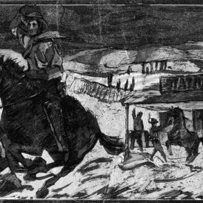 Copyright: 09.3.449 Pony Rider riding away from Station No. 4. Art
