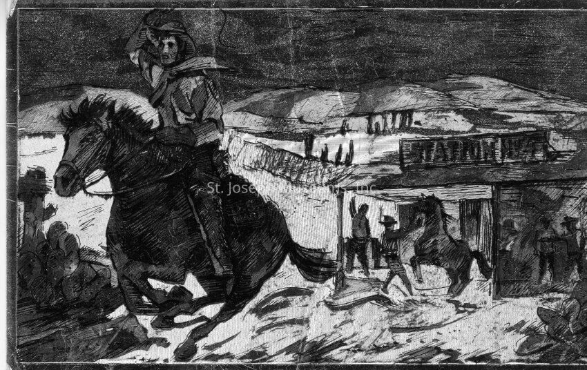 Pony Rider riding away from Station No. 4.