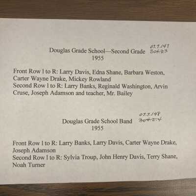 Banks, Larry, Davis, Larry, Drake, Carter Wayne, Adamson, Joseph, Troup, Sylvia, Davis, John Henry, Shane, Terry, Turner, Noah, Douglas Grade School, Black History, Black Schools, Douglas Elementary School