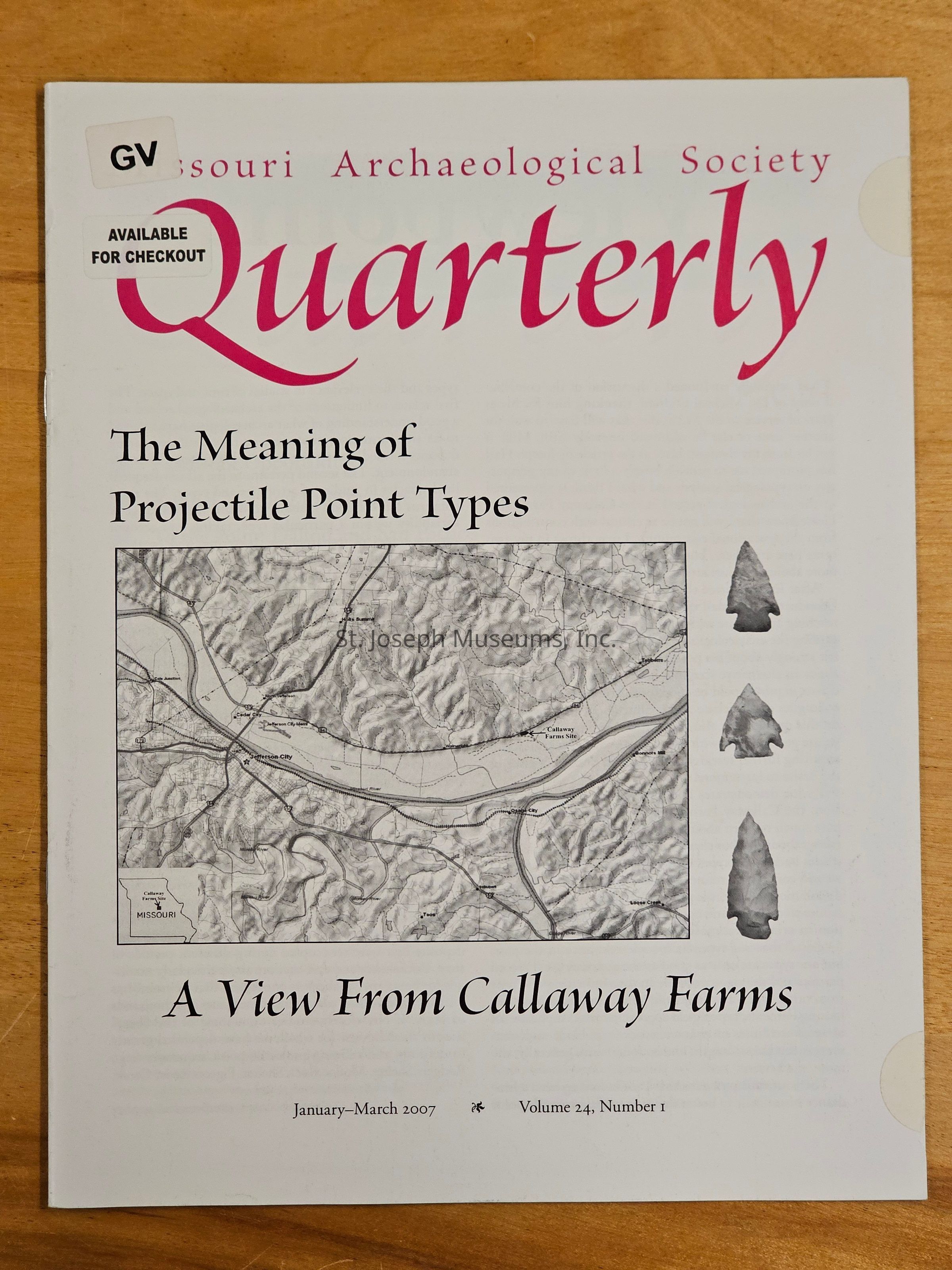 January-March 2007 edition of Missouri Archaeological Society Quarterly. Includes a book review b y Jim Feagins: Kansas Archaeology