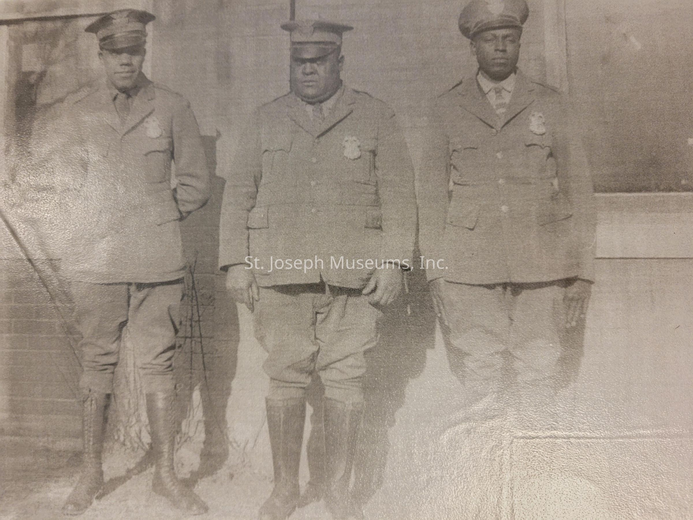 Police Chauffeur, St. Joseph, Photo--Black & white photo of 3 St. Joseph police chauffers in uniform - Men unidentified c. 1920.