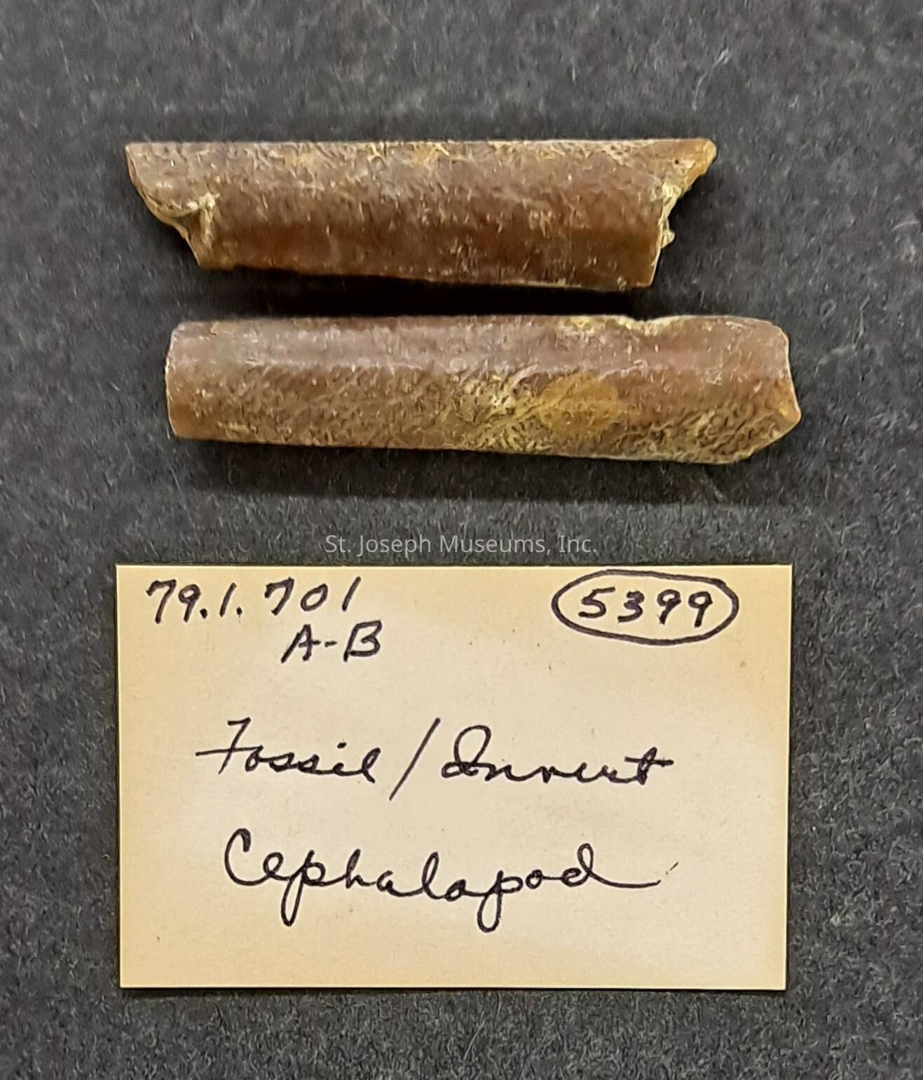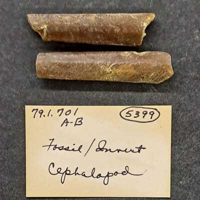 Description: Fossil/cephalopod/invertebrate/ONE BROKEN IN HALF LENGTHWISE