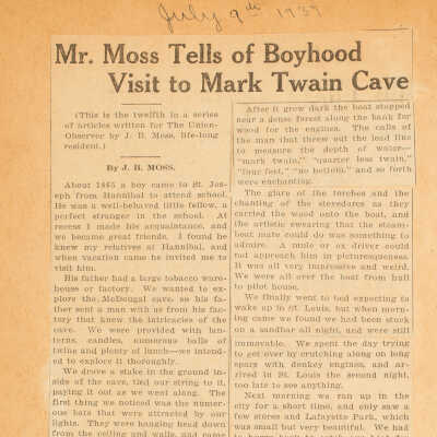 Mr. Moss Tells of Boyhood Visit to Mark Twain Cave (July 9, 1937)Photograph Details