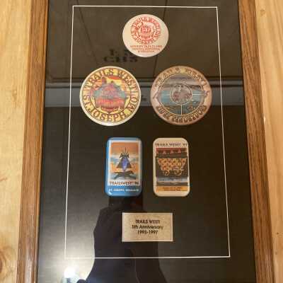 Framed Buttons from the first 5 years of Trails West! in Oak Frame