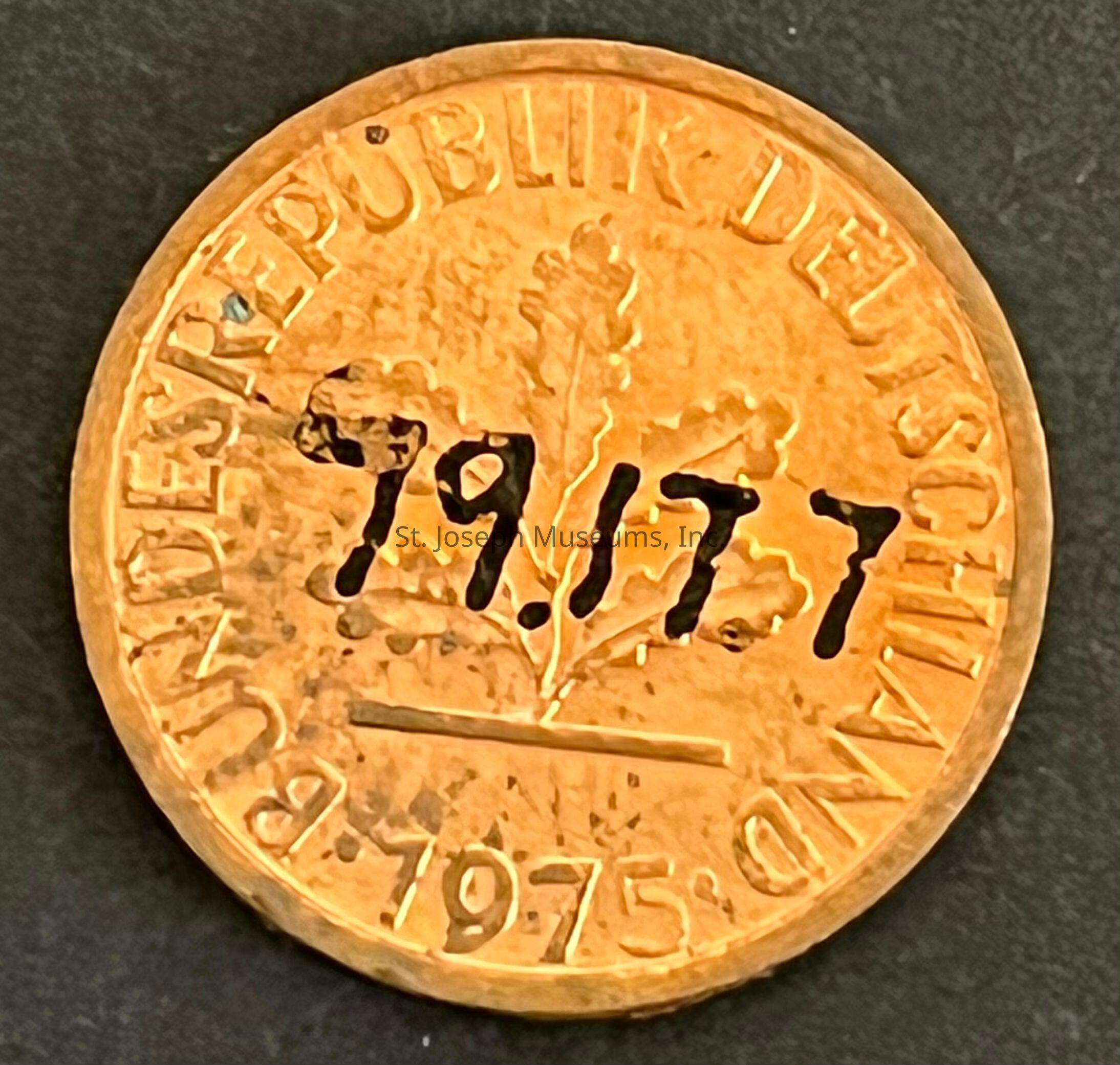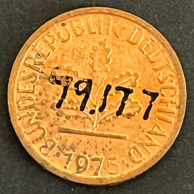 "Bundesrepublik Deutschland" 1975- 1 Pfennig, coin/token, copper colored/ 5/8 dia.