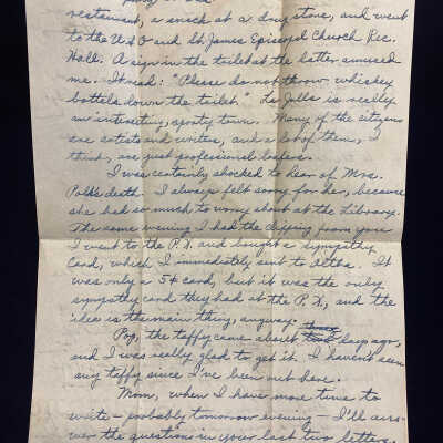 Mom, when I have more time to write - probably tomorrow evening - I'll answer the questions in you last two letters.