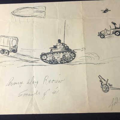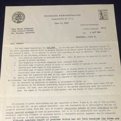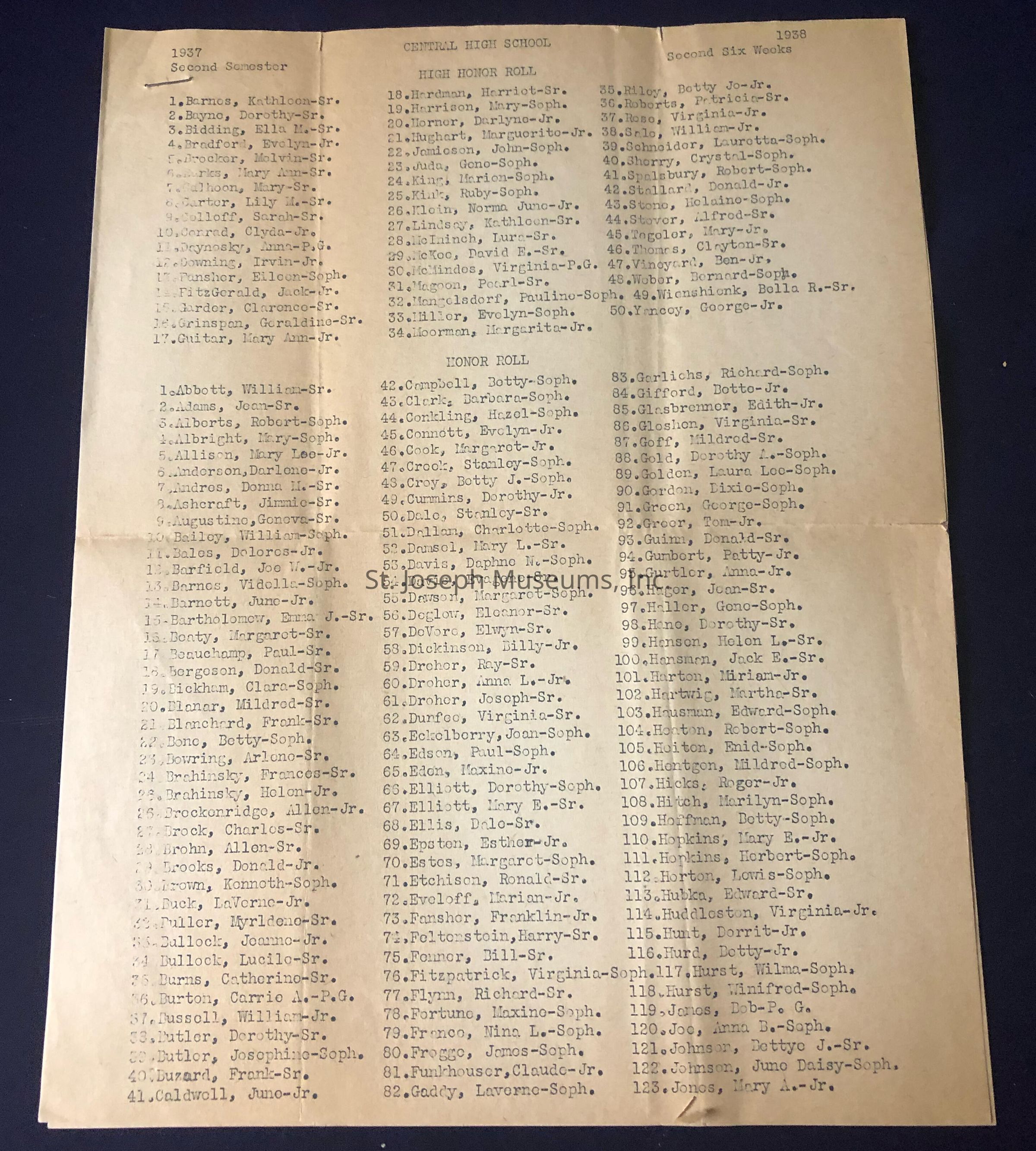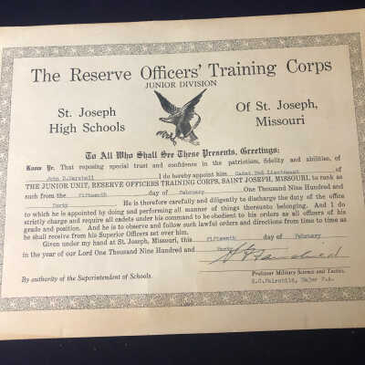 6 grade cards, 1 doctor’s note, 2 Central High School yearbook pages, 2 certificates from the Military Honor Society, 19 handwritten letters, 2 pencil drawings, 14 typed letters from the Army Department, 1 card informing of Death in Action, 9 insurance documents, 17 photos, 1 court document, and 4 cemetery brochures.Context