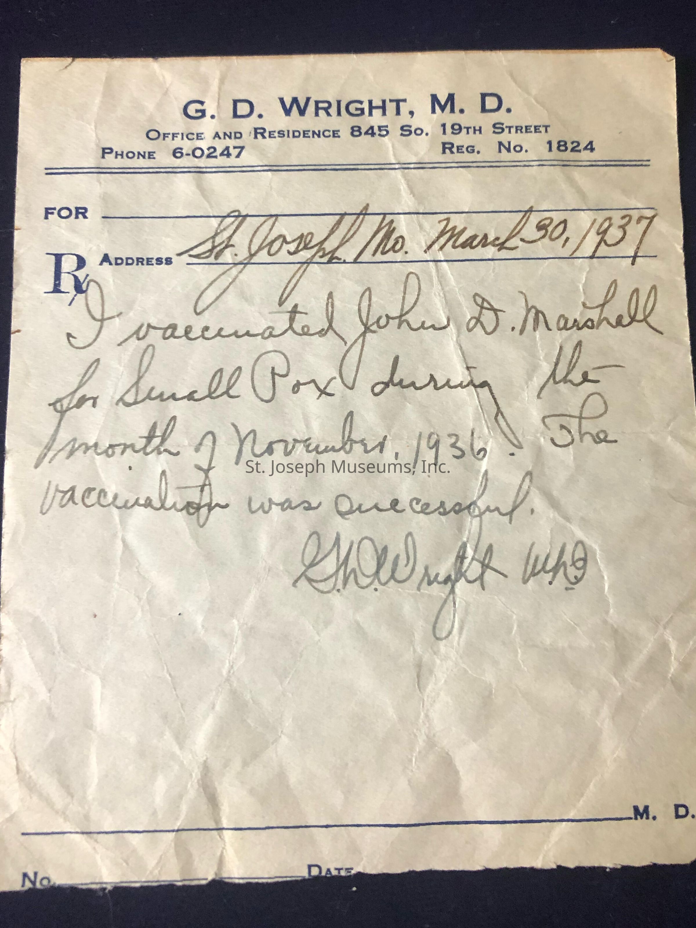 The Marshall family is of historical importance to the history of Saint Joseph, Missouri.Collection