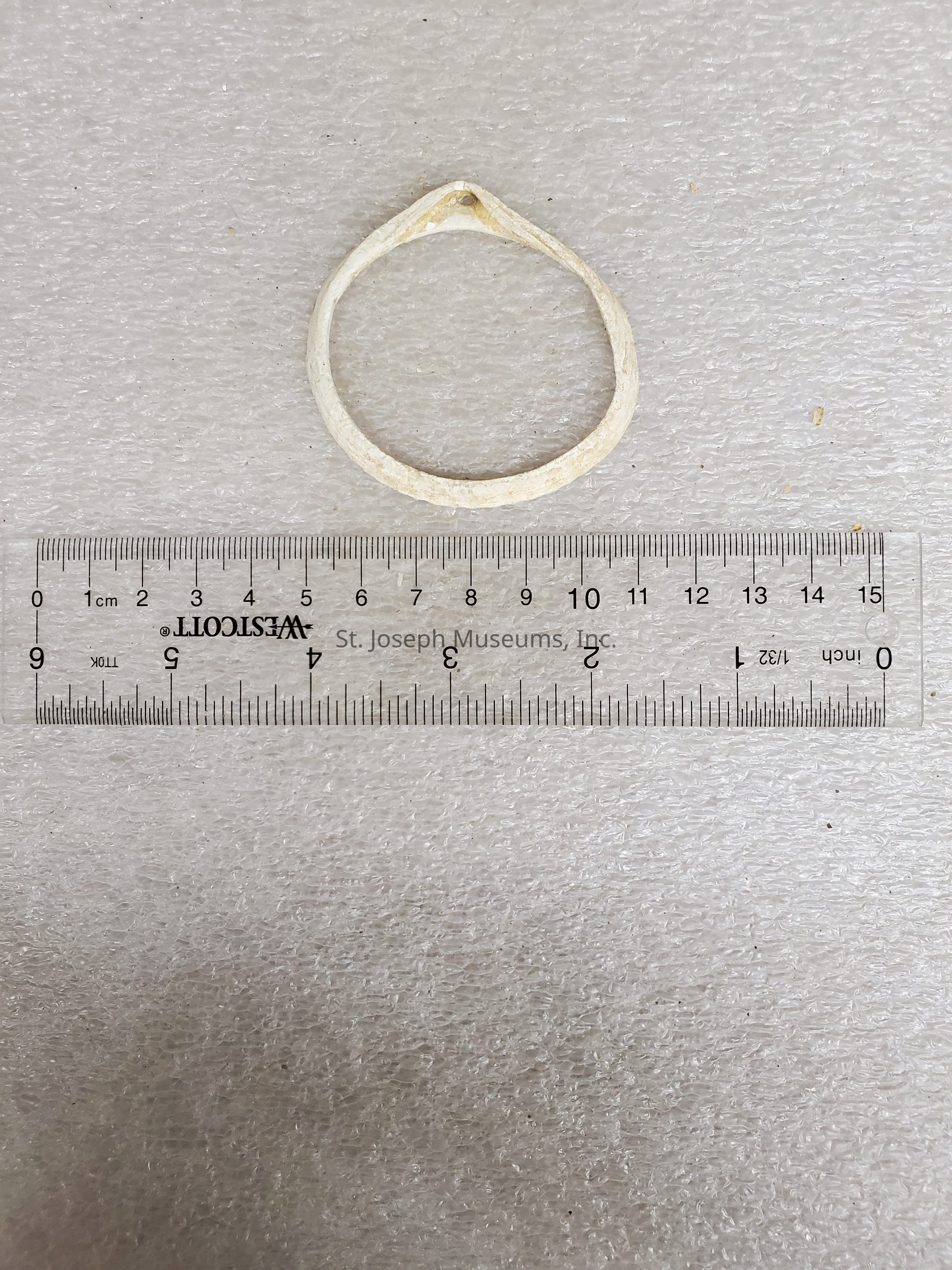 Shell ornament/circular in shape/appears to have been a bracelet/hole in side/ broken and repaired in three piecesCollection