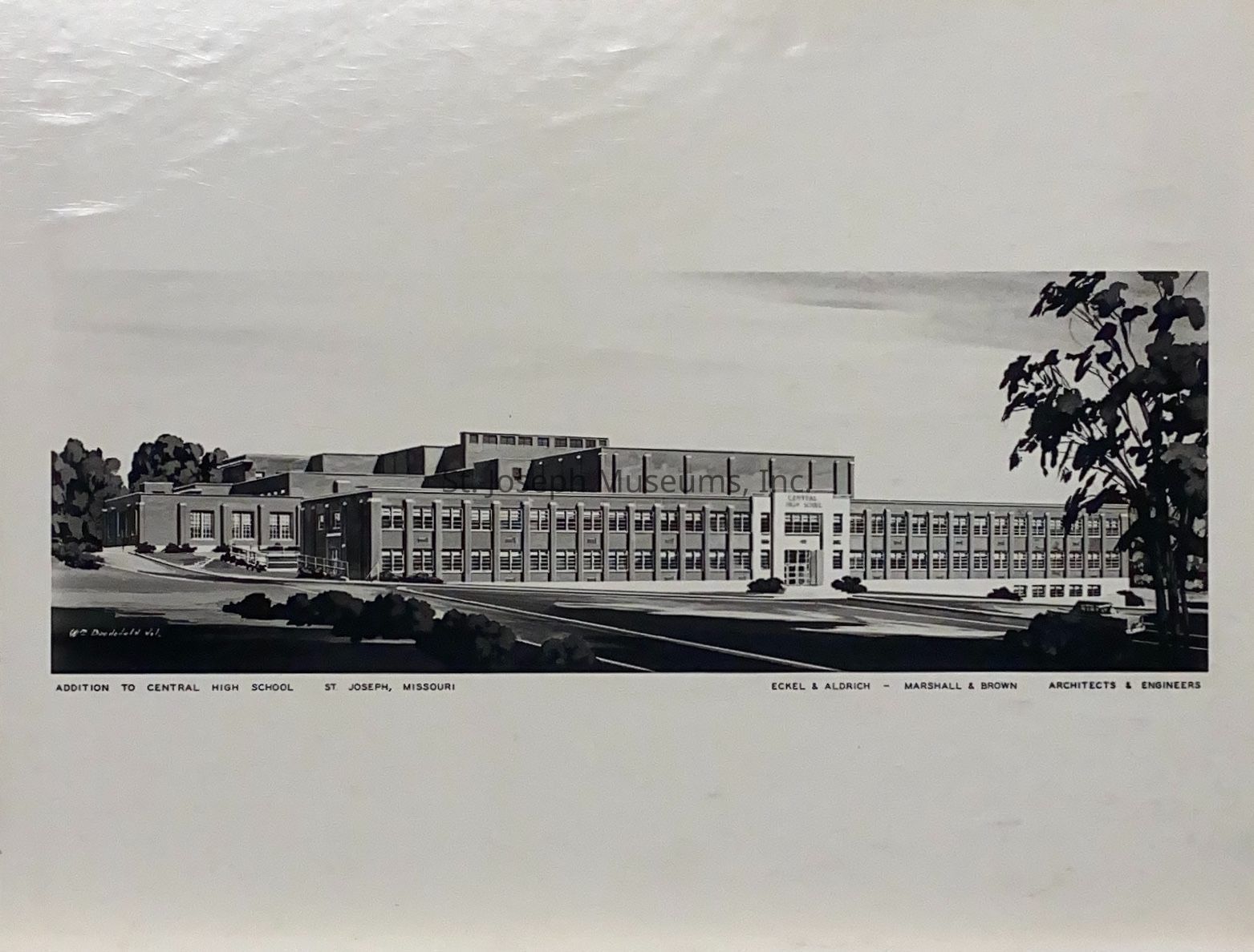 Central High School, 2602 Edmond, Addition Rendering, 1960. St. Joseph, Missouri. Photo of drawing, mounted. Building constructed: 1960.